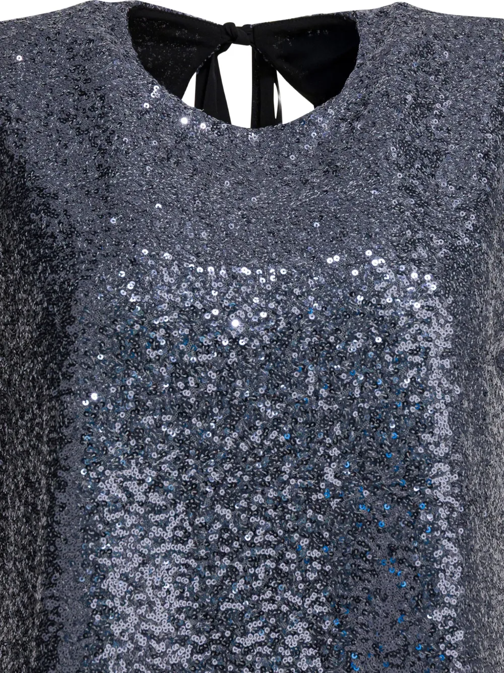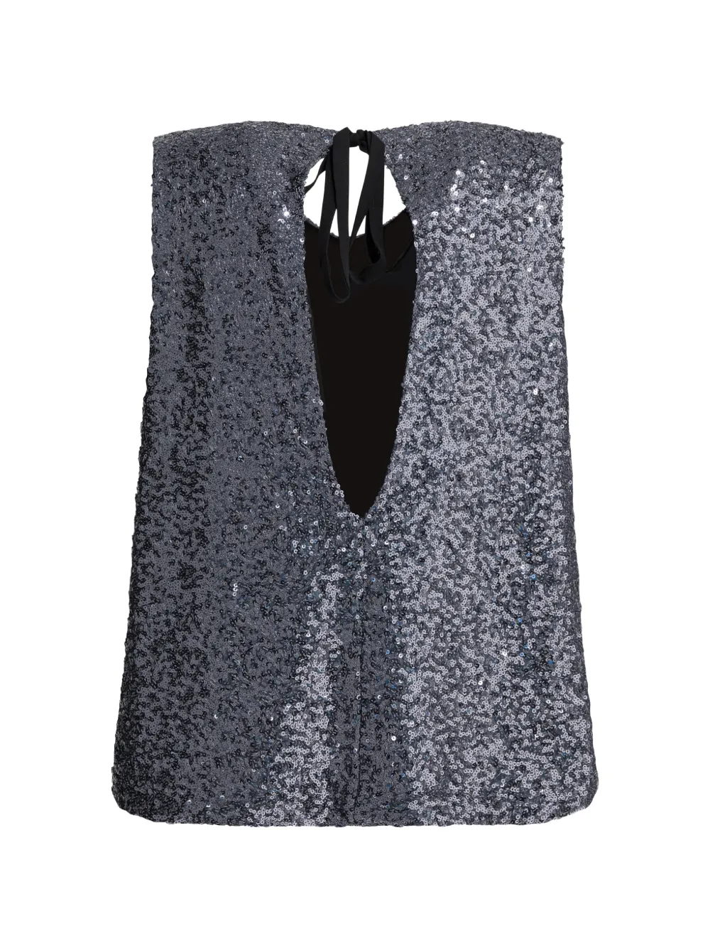 Серое платье без рукавов с украшением из пайеток, завязками и открытой спиной