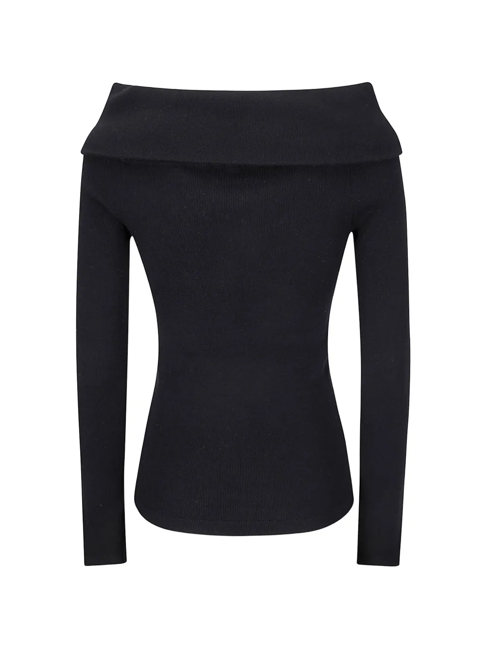 Черный топ с ребристой текстурой, длинными рукавами и открытыми плечами