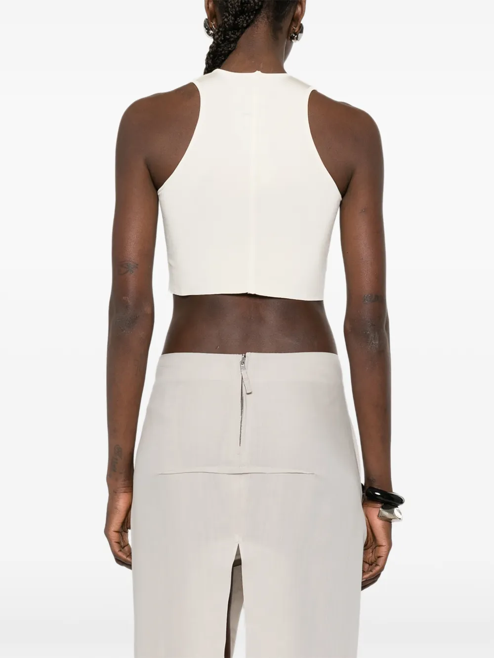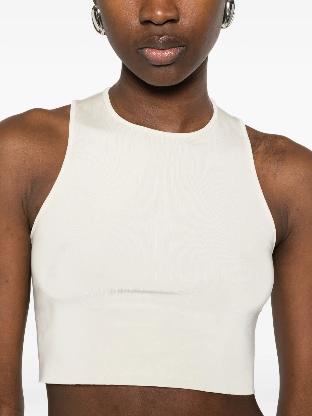 Укороченный топ сливочно-бежевого цвета без рукавов с круглым вырезом