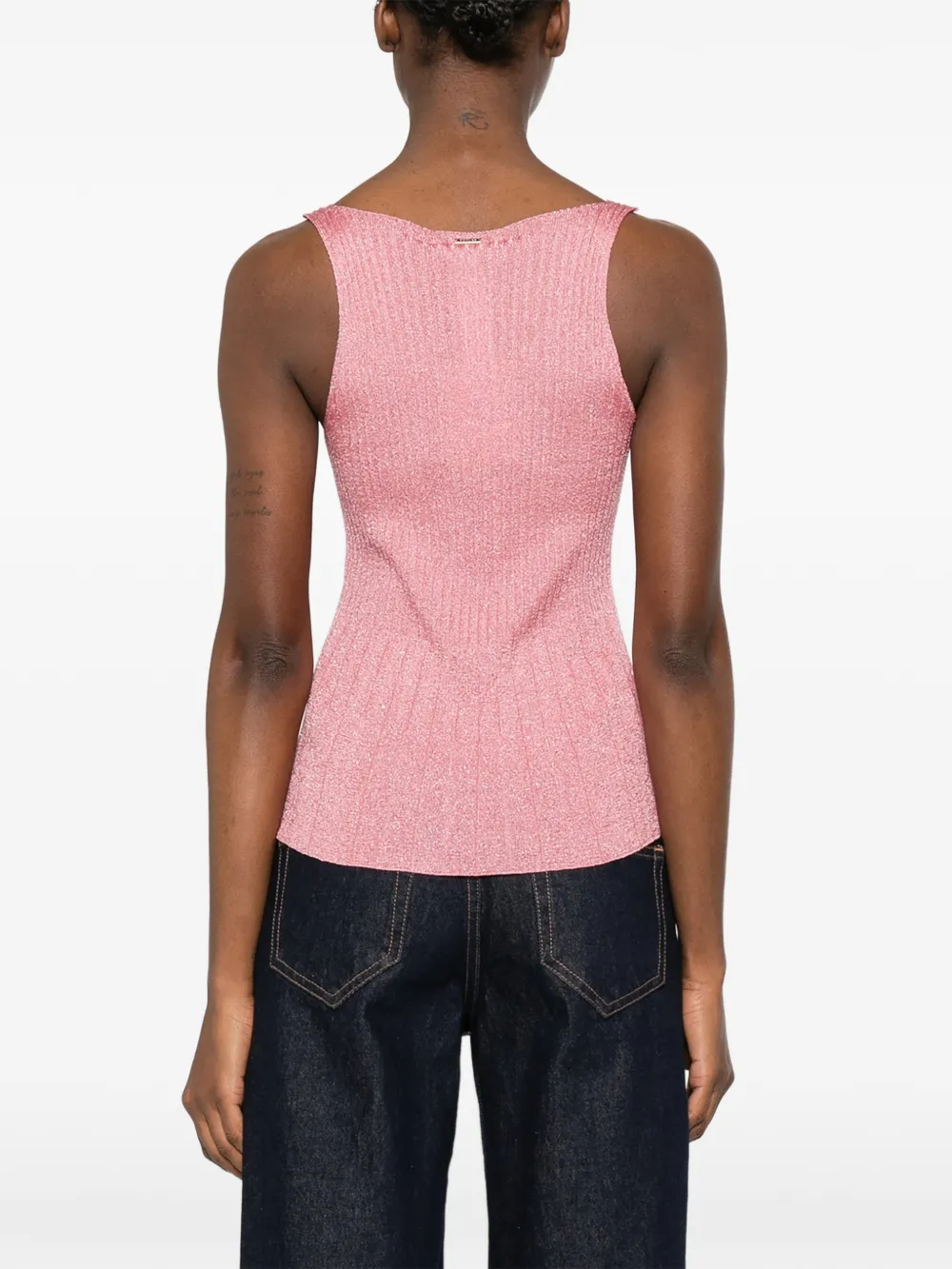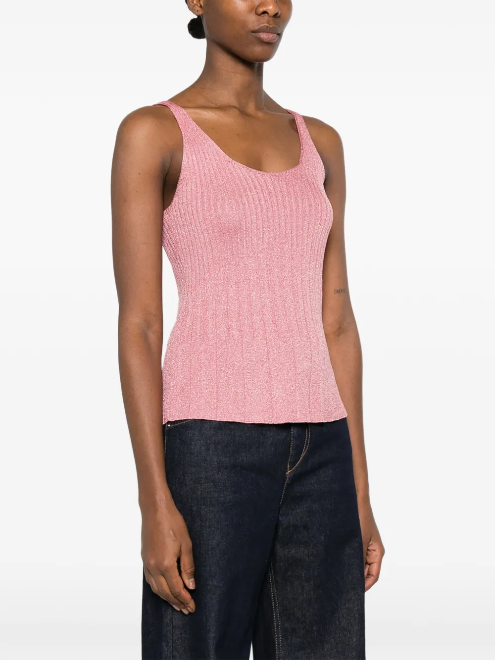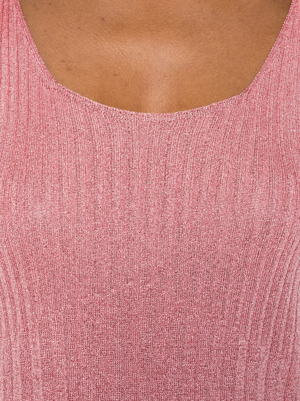 Розовый трикотажный топ в рубчик с круглым вырезом и без рукавов