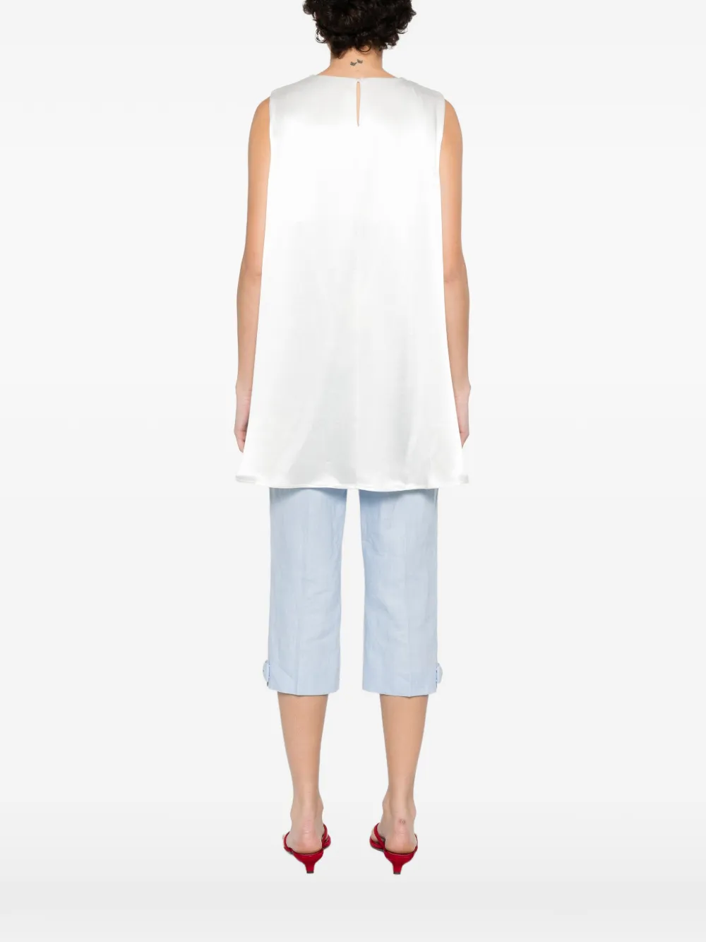 Белый топ без рукавов с круглым вырезом и асимметричным подолом