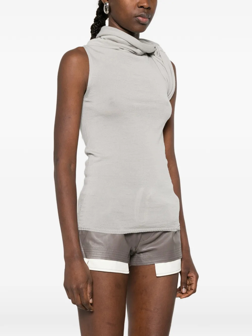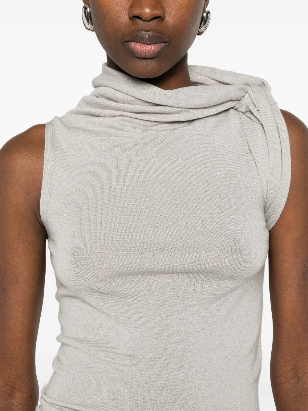 Жемчужно-серый топ без рукавов с перекрученным декором