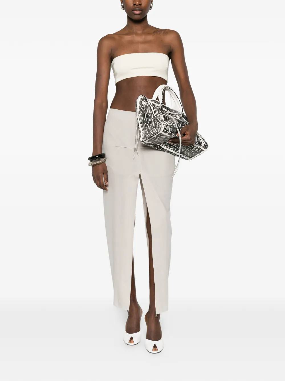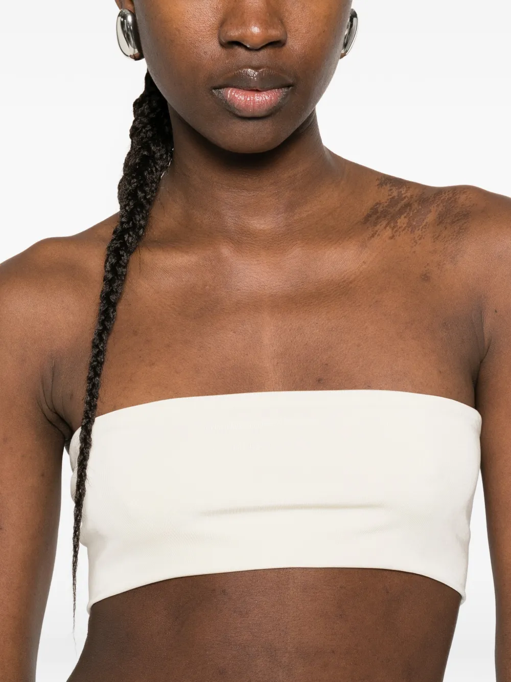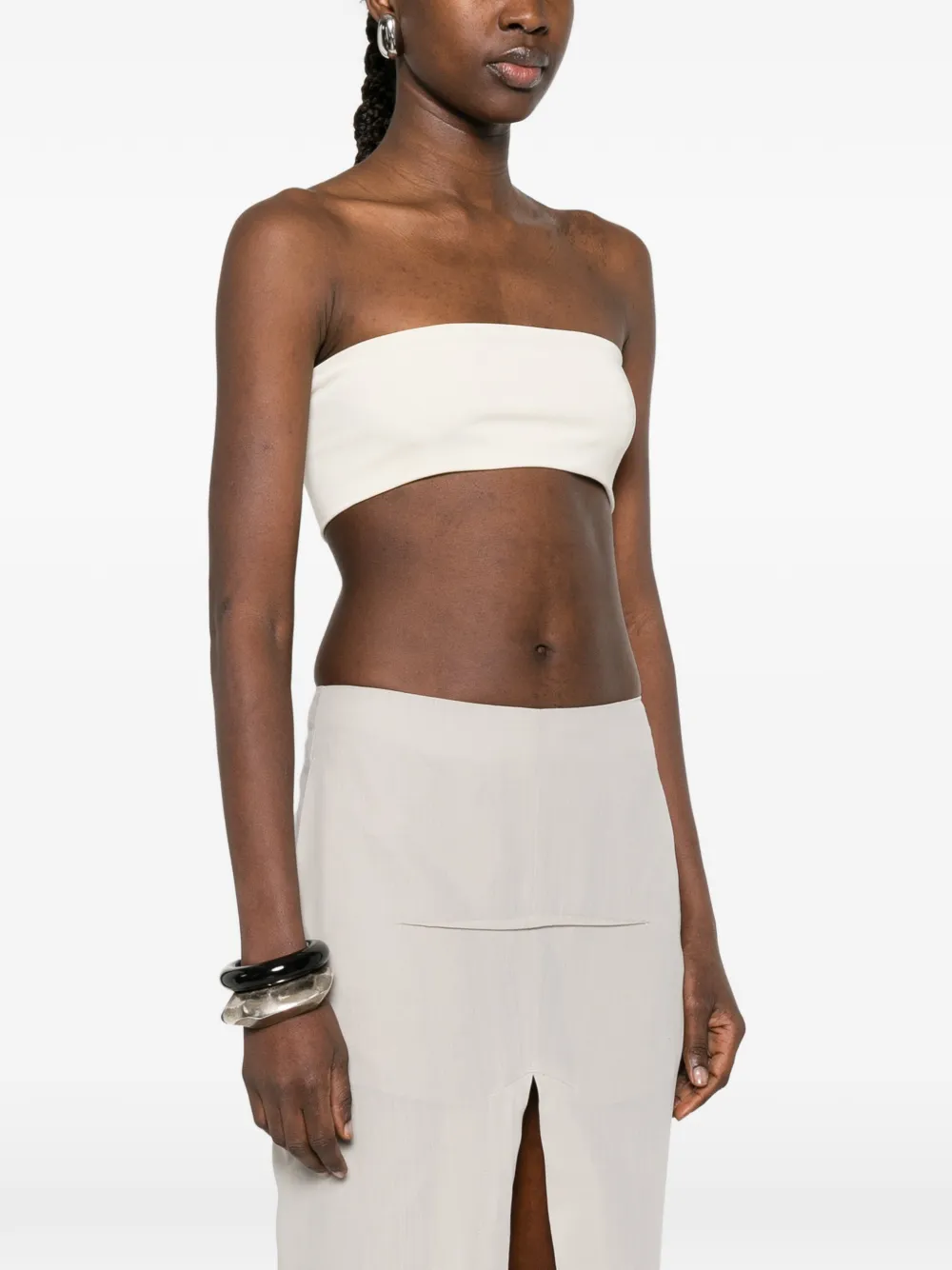 Укороченный топ бежевого цвета без бретелек