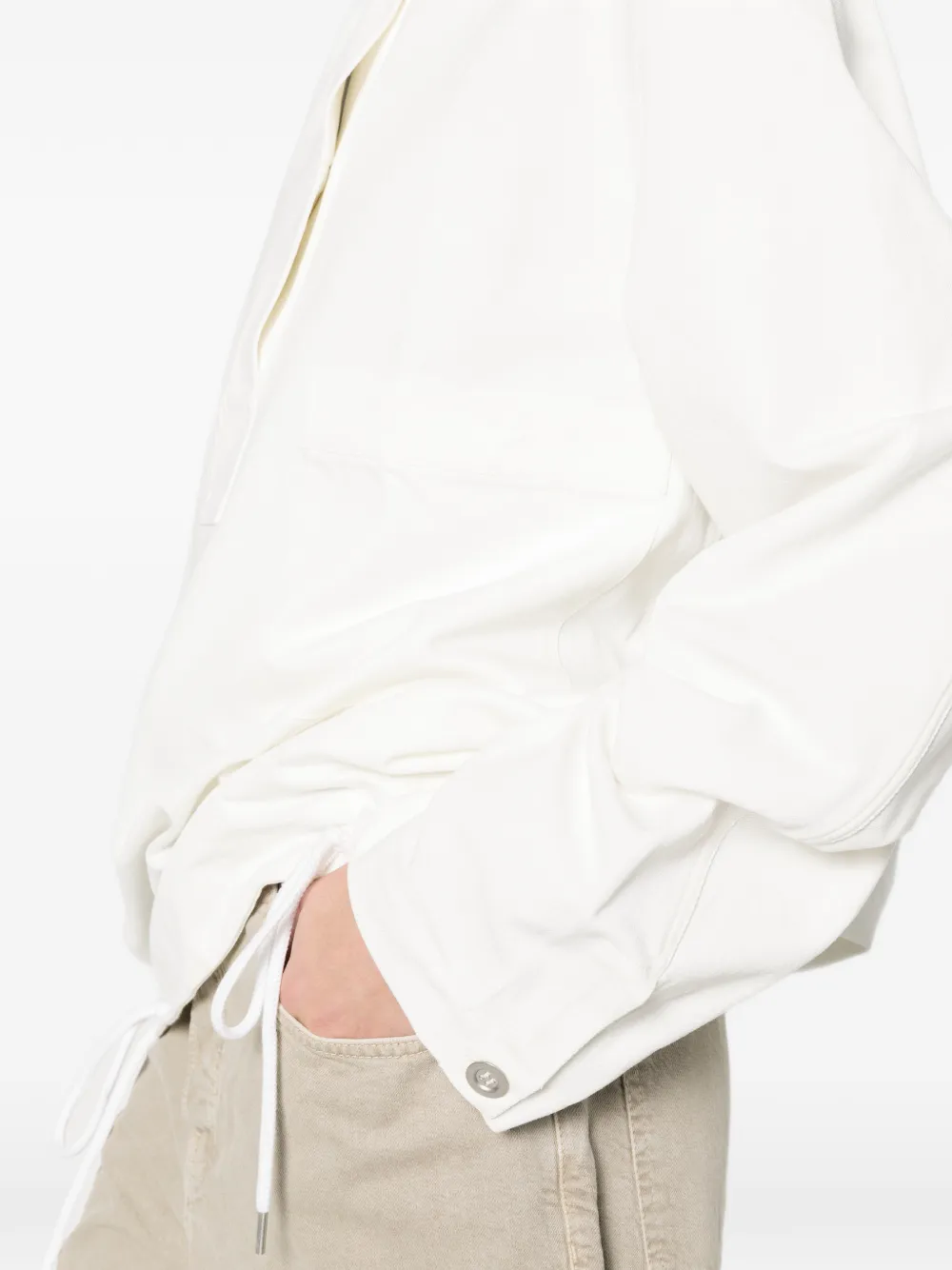 Белые шнурки на груди с нагрудным карманом