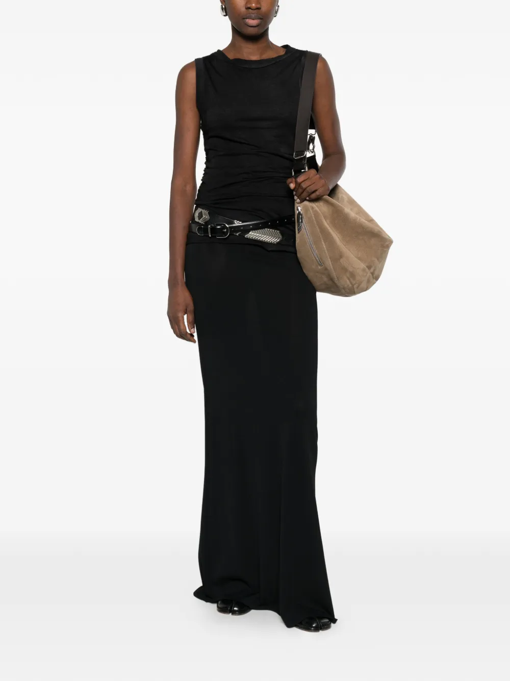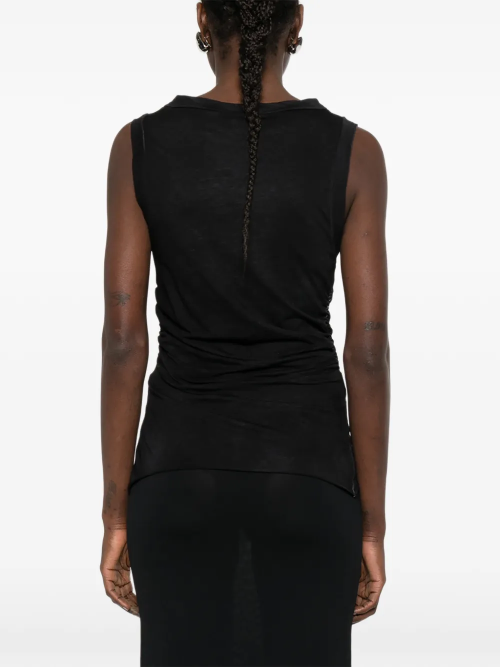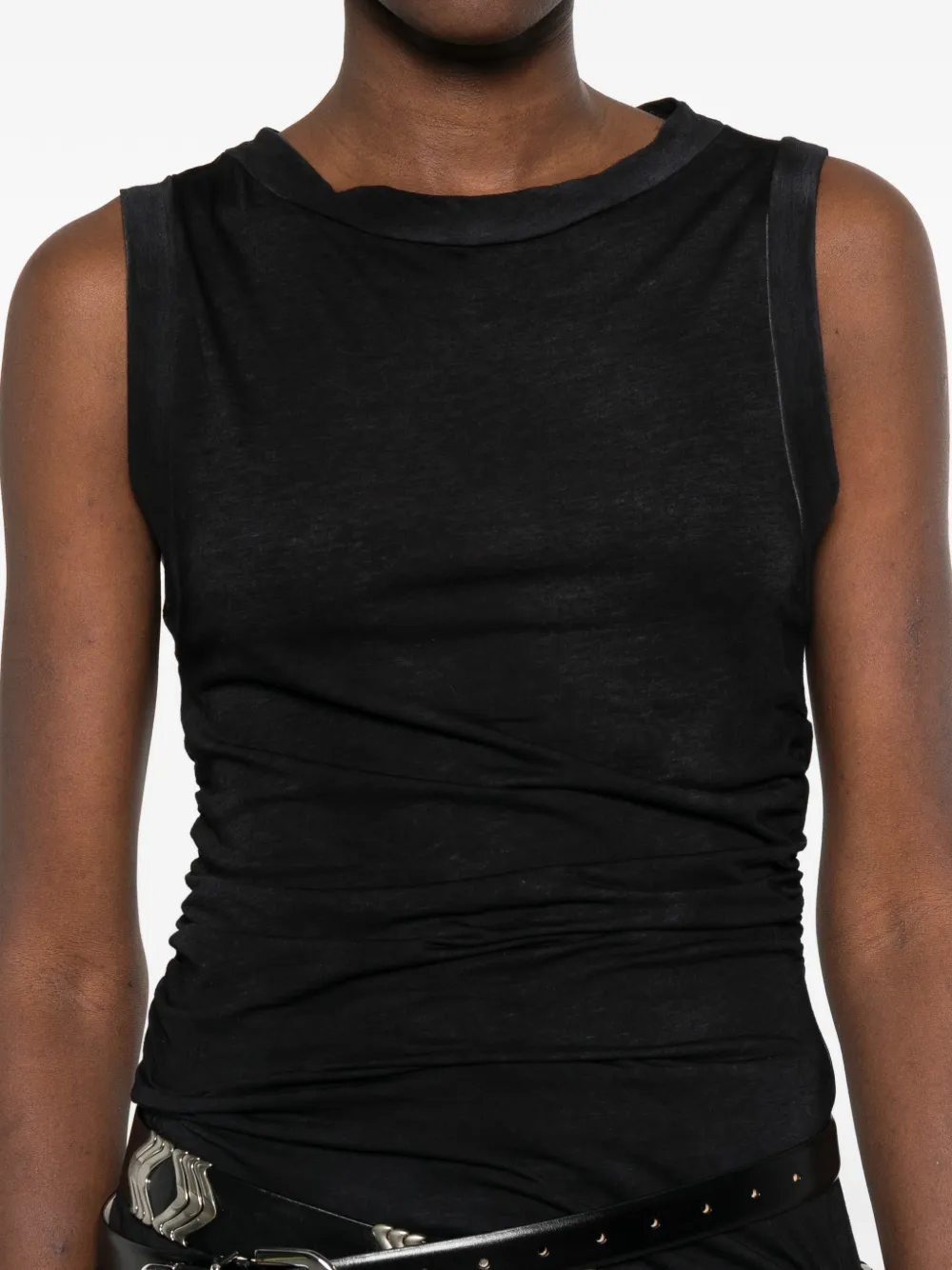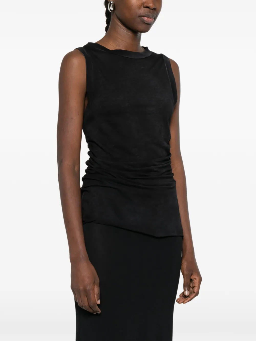 Черный топ без рукавов с драпировкой