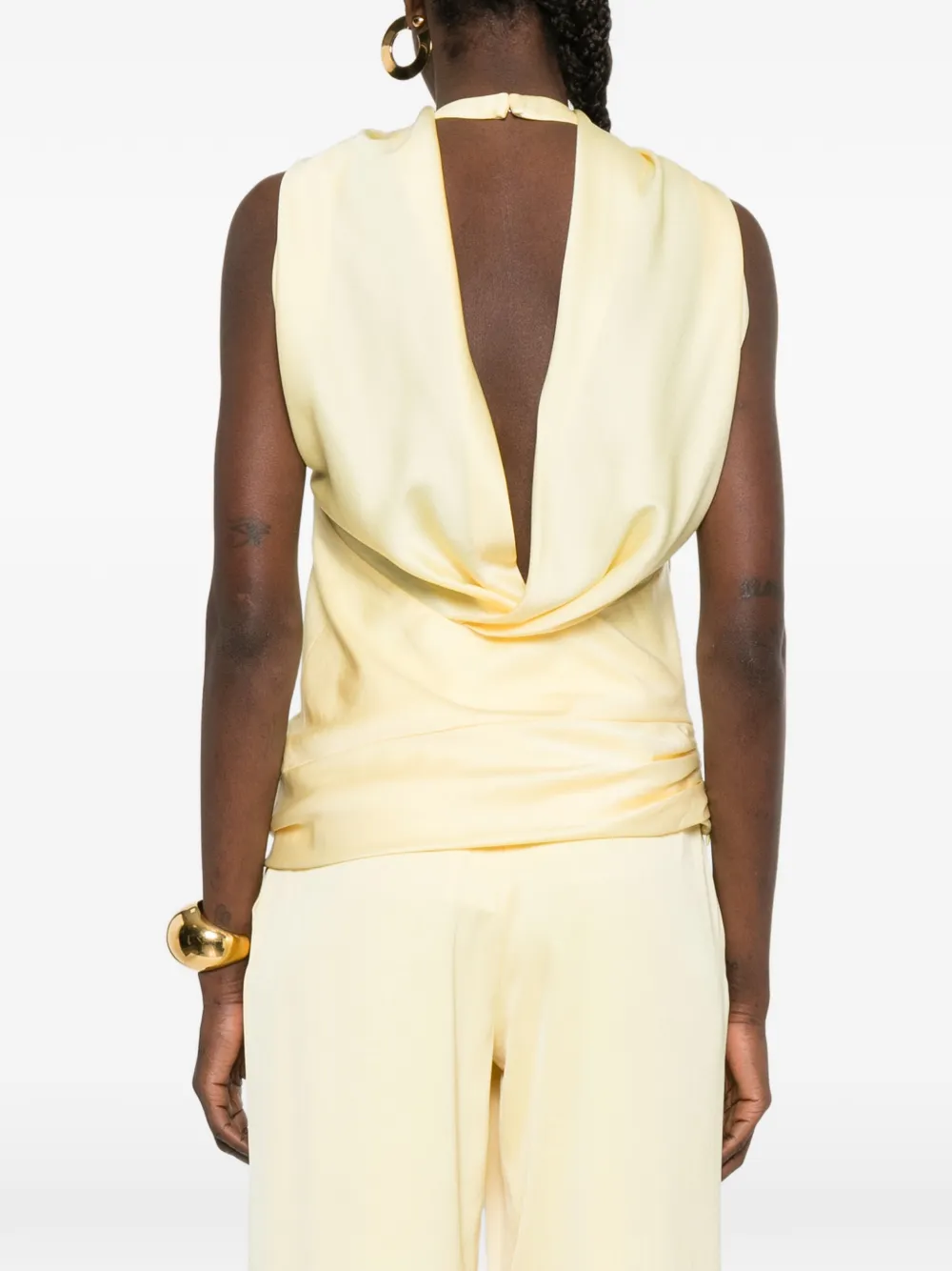 Желтый топ без рукавов с драпировкой