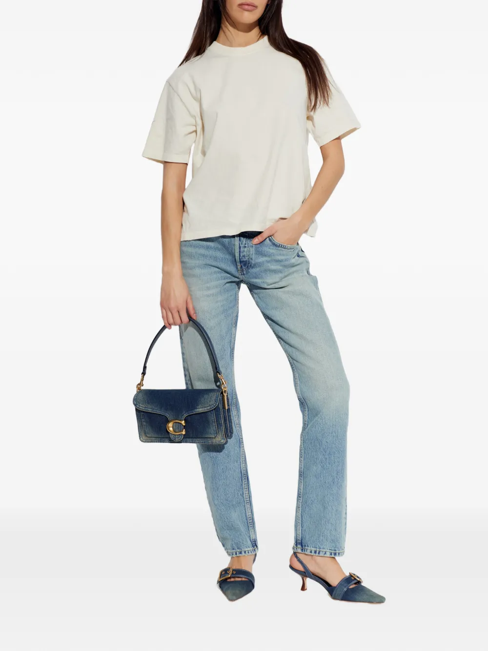 Голубые джинсовые туфли с украшением в виде пряжки, заостренным носком и ремешком на пятке