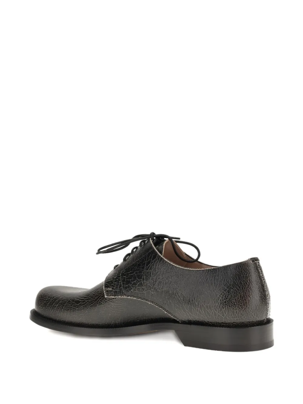 Черные, с шнуровкой, фактурный эффект, круглый носок, плоская подошва