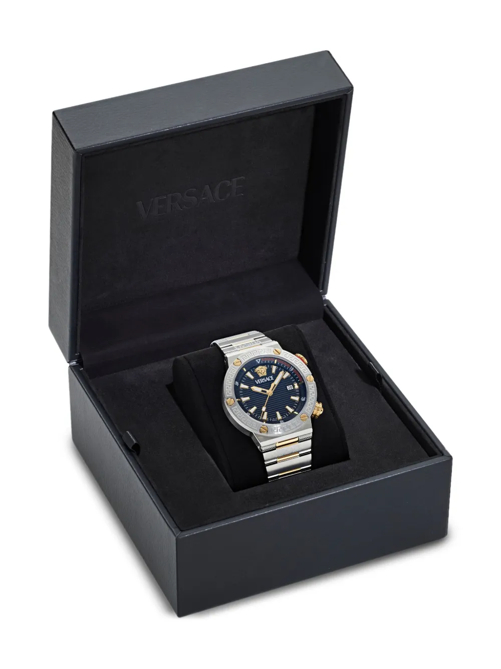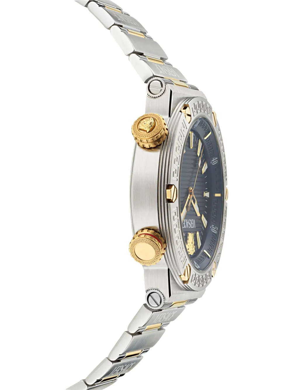 Подробнее о товаре: • темно-синий циферблат • корпус из нержавеющей стали • 43 мм • круглый циферблат • циферблат с функцией даты • золотистая корона • кварцевый механизм • Повседневное использование и воздействие внешних факторов могут уменьшить блеск драгоценных камней и поверхностей, покрытых золотом. Для ухода используйте специальные неабразивные средства, предназначенные для чистки ювелирных изделий. • В комплект входит оригинальная коробка. • На этот товар распространяется стандартная годовая гарантия от бутика.