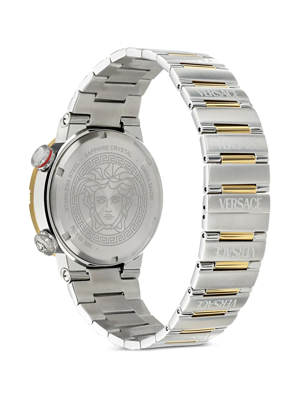 Подробнее о товаре: • зеленый циферблат • круглый корпус • 43 мм • кварцевый механизм • браслет из нержавеющей стали • выгравированный логотип • В комплект входит оригинальная коробка. • На этот товар распространяется стандартная годовая гарантия от бутика. • Повседневное использование и воздействие внешних факторов могут уменьшить блеск драгоценных камней и поверхностей, покрытых золотом. Для ухода используйте специальные неабразивные средства, предназначенные для чистки ювелирных изделий.