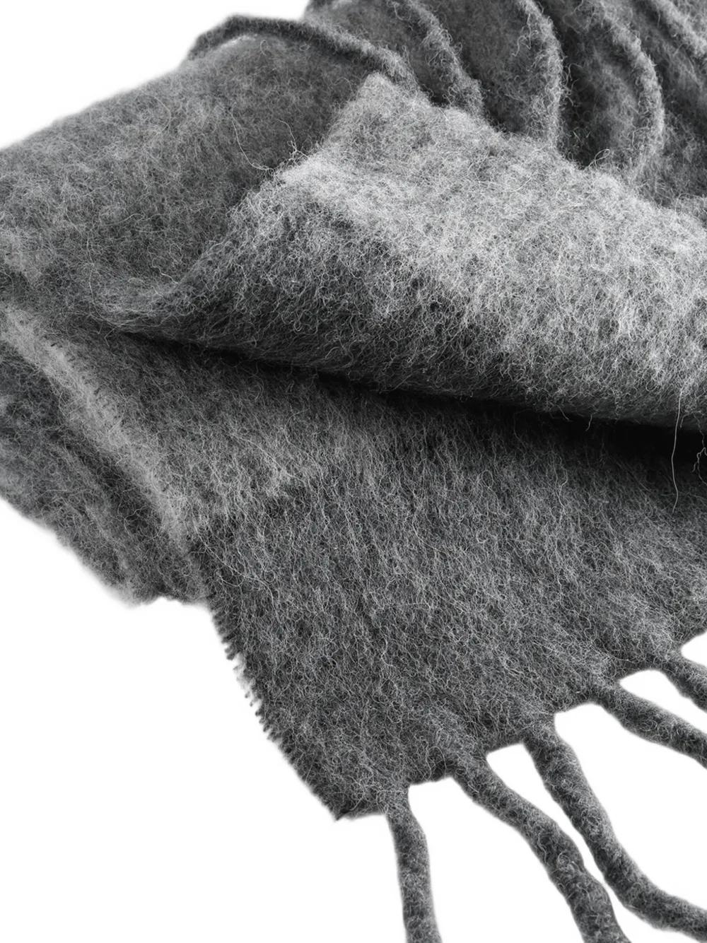 Серый с полосатым узором и бахромой по краям