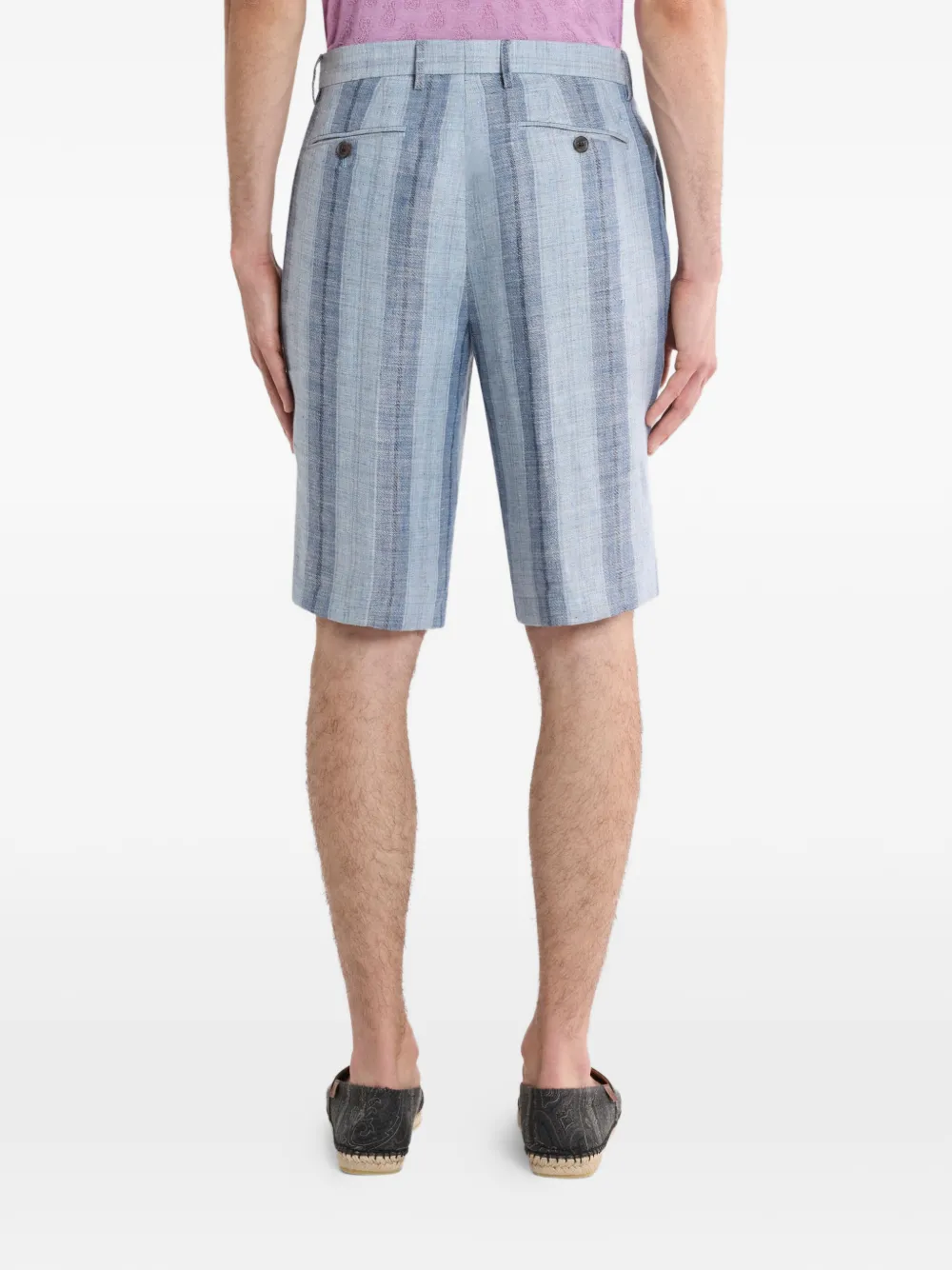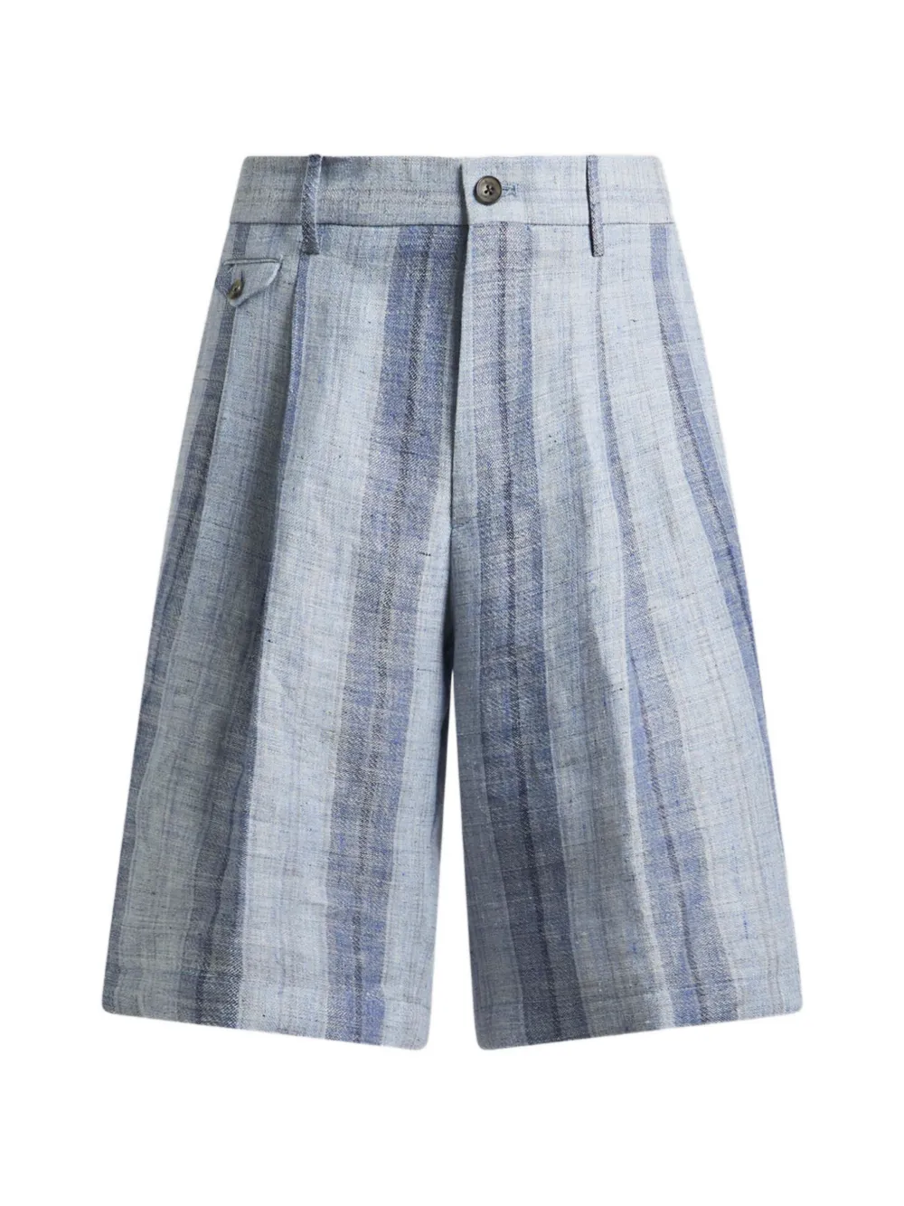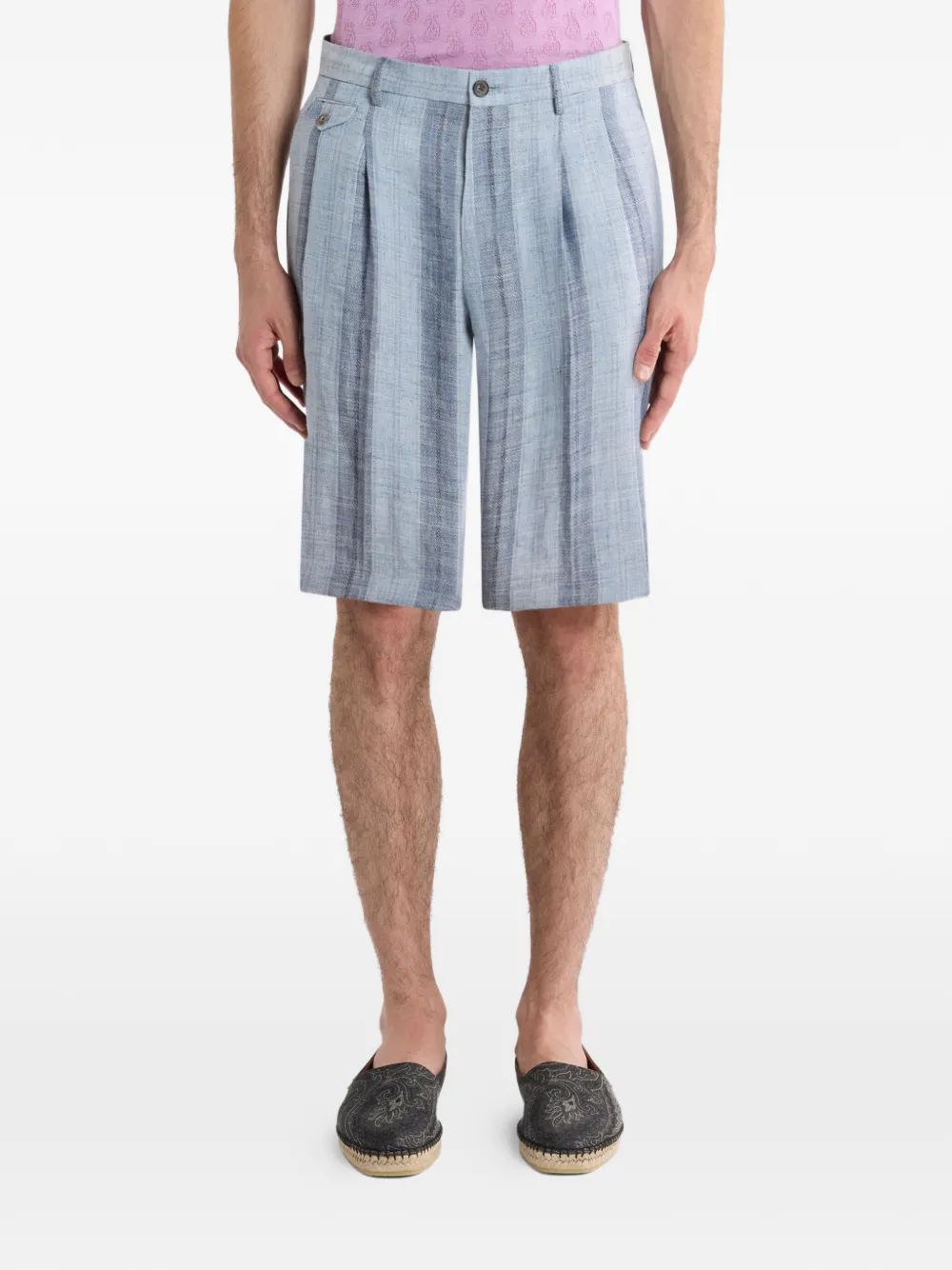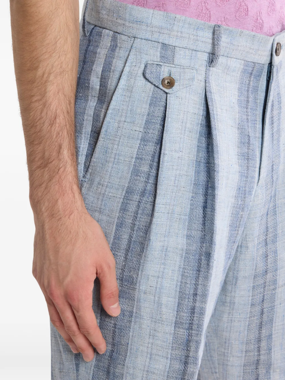 Голубая в полоску рубашка с плиссированными деталями и застегивающимися клапанами на карманах