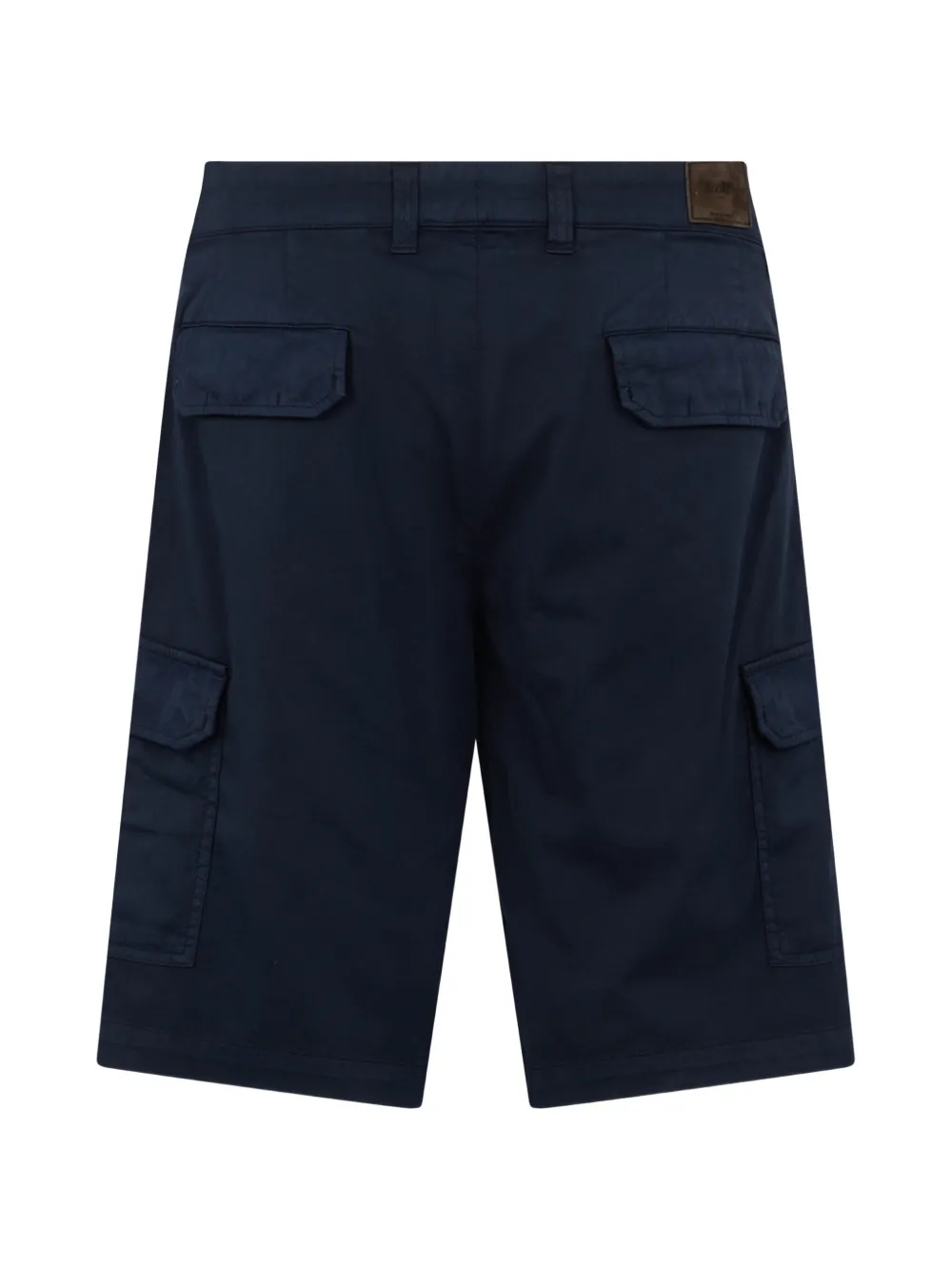 Темно-синий, застежка на пуговицы, накладные карманы карго, шлевки для пояса, задние карманы