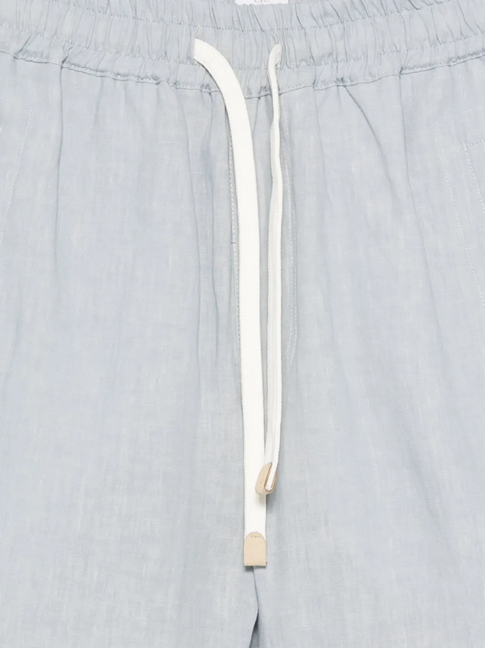 Синий цвет, эластичный пояс, шнурок для завязывания, боковые карманы, задний карман