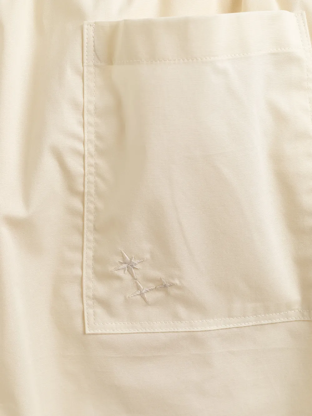 Кремовый цвет, эластичный пояс, задние карманы, вышитая отделка