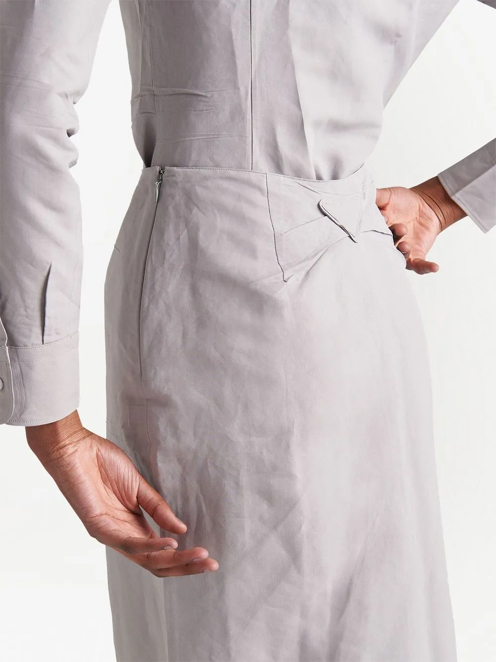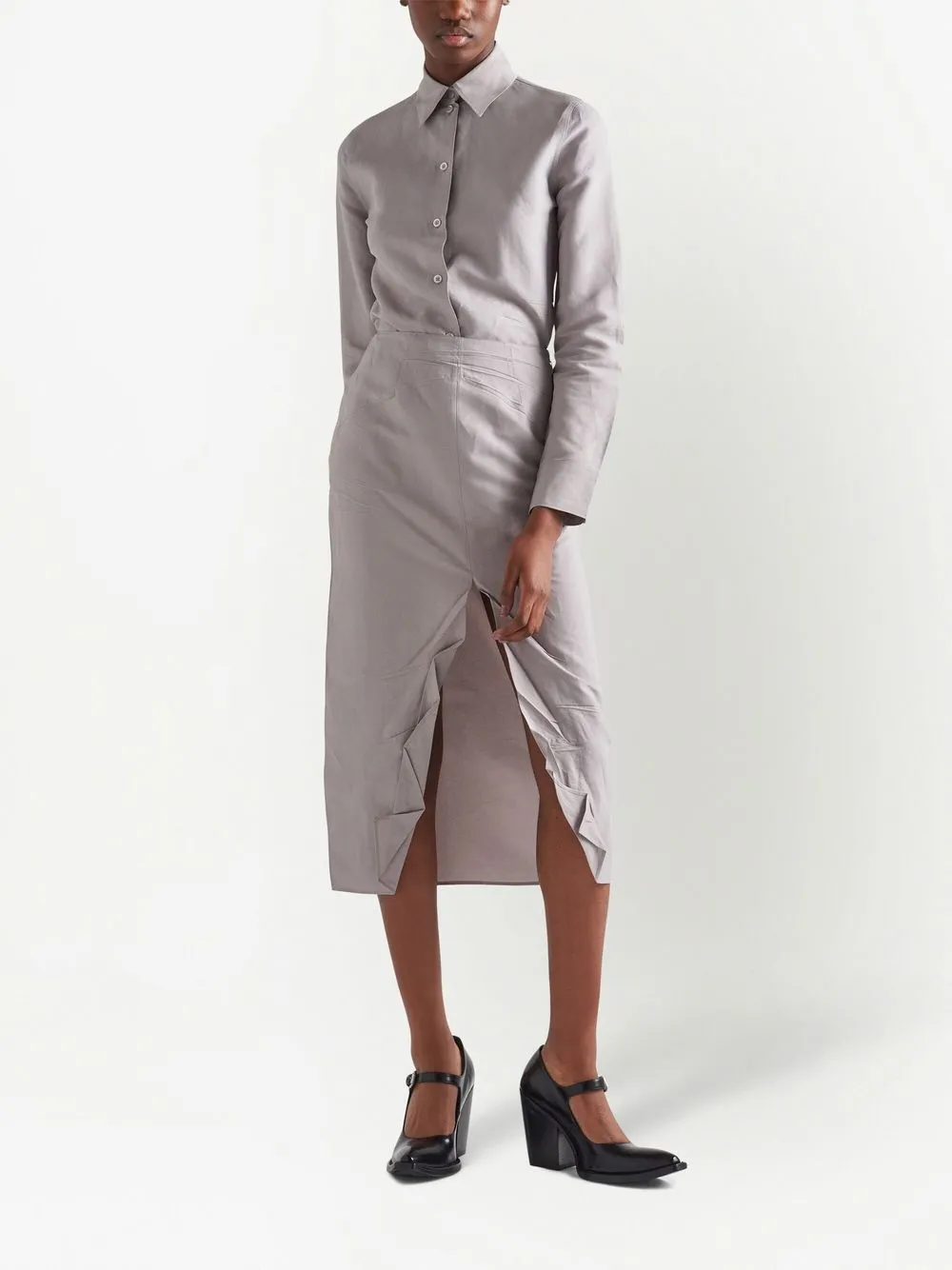 Подробнее о товаре: • стальной серый • лен/флакс • треугольный логотип • защипы • боковой разрез • короткая застежка на молнии сбоку • завышенная талия • узкий крой • средней длины • прямой подол • Ответственный выбор: Этот товар как минимум на 50% состоит из материалов, которые признаны более безопасными для окружающей среды или сертифицированы независимыми организациями.