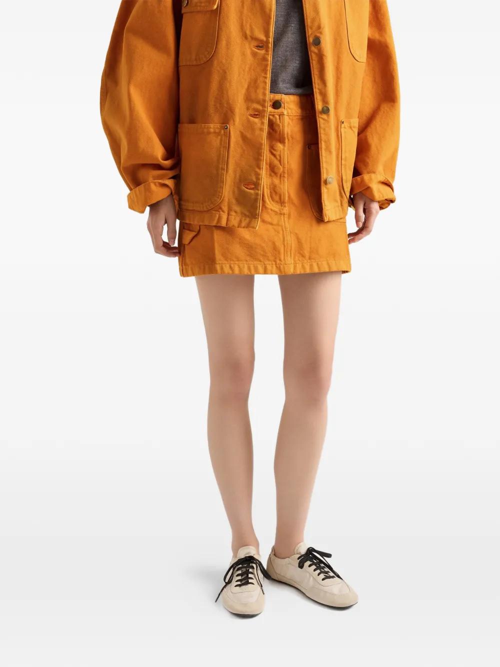Утилитарные детали формируют дизайн этой мини-юбки из канваса с винтажным эффектом.