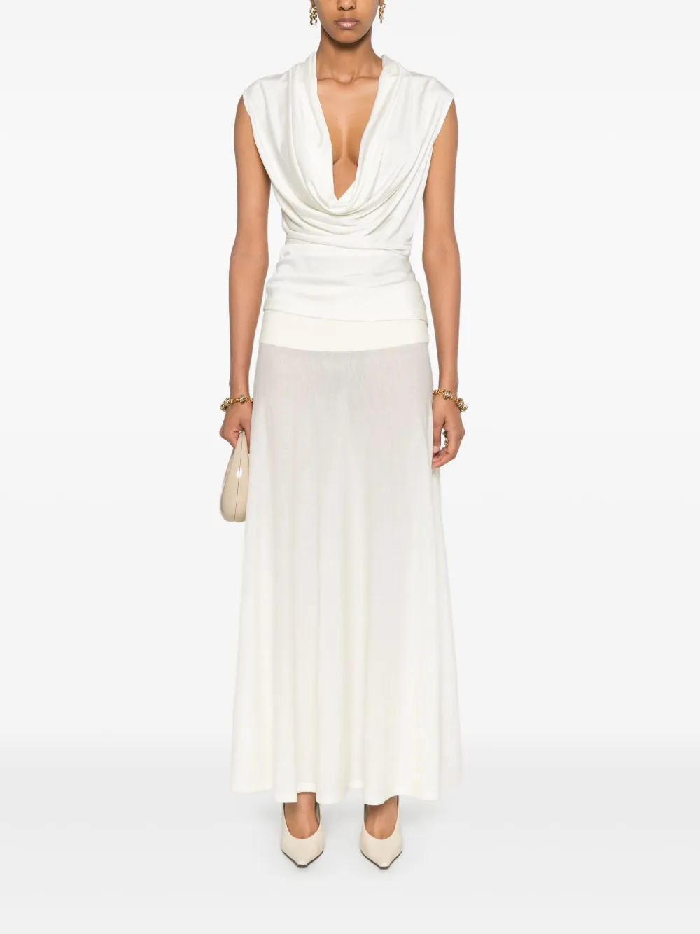 · эта юбка макси должна сидеть чуть ниже линии талии