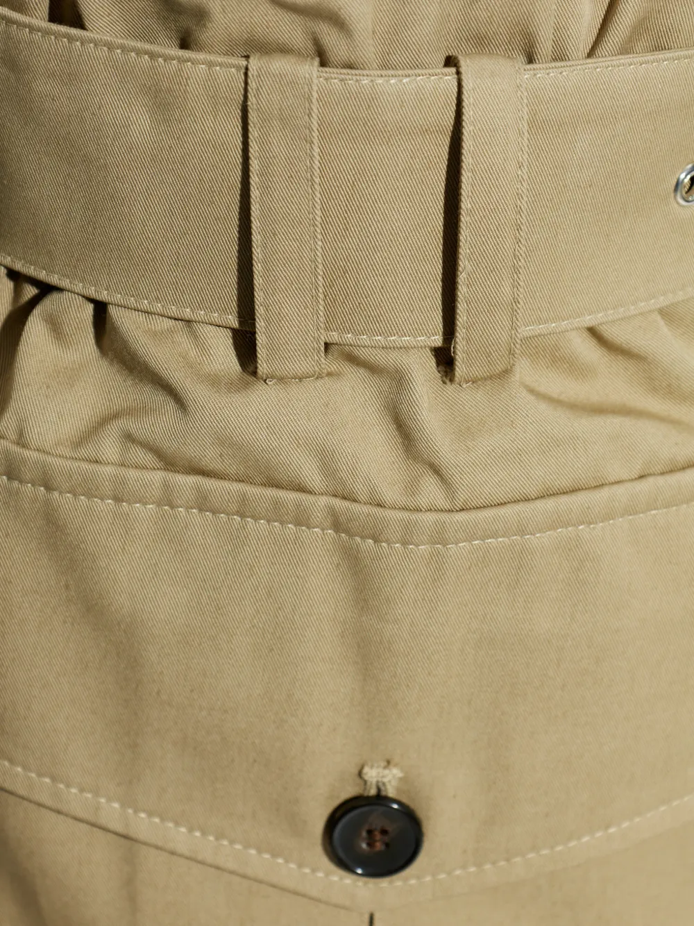 Глиняный (глиняного цвета) хлопковый ремень, передние клапанные карманы, застежка на пуговицы, складки
