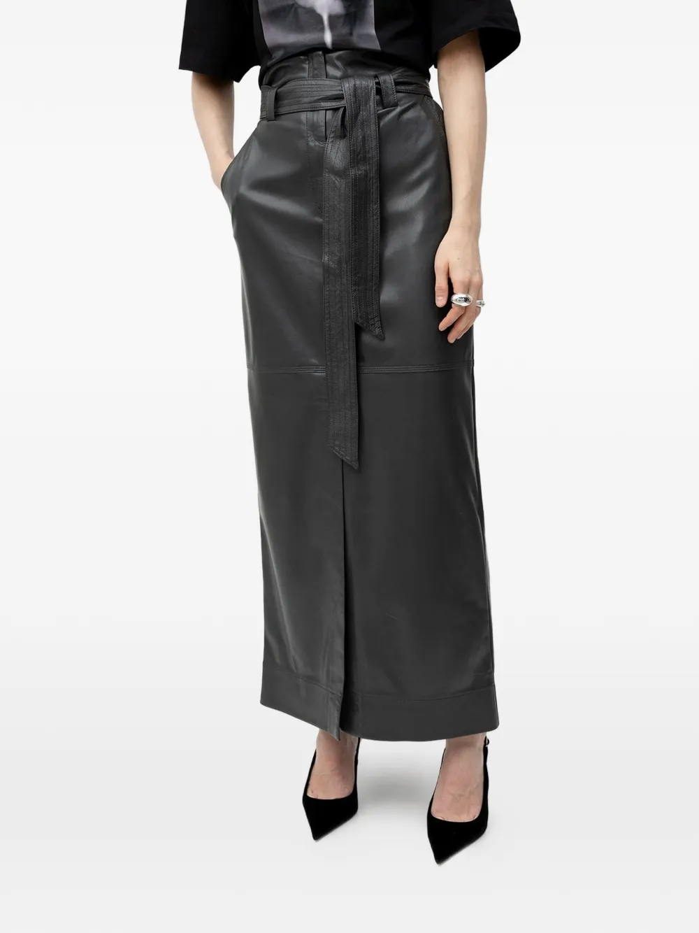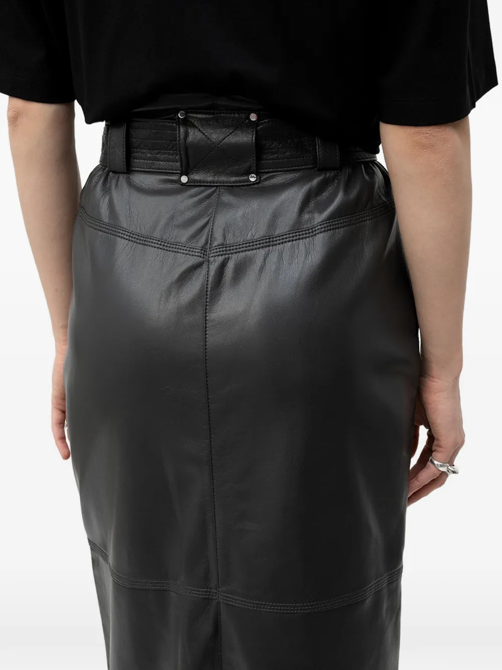 Черная вещь с контрастной отделкой швов, разрезом спереди, панельной конструкцией и прямым низом