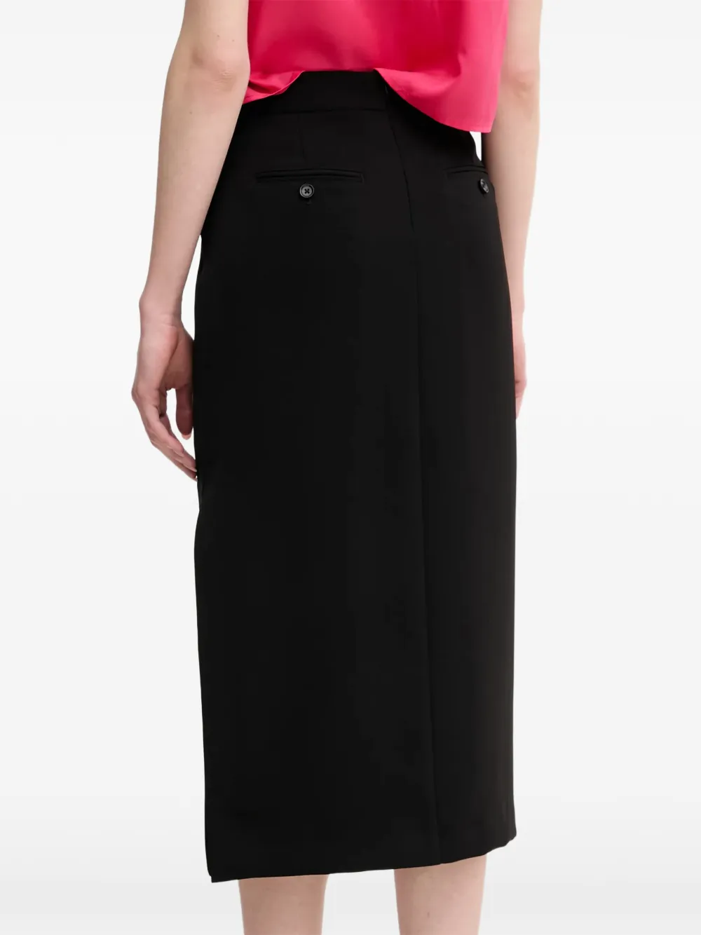 Черная юбка-карандаш миди с разрезом сбоку, прямым подолом и застежками на пуговицы сзади