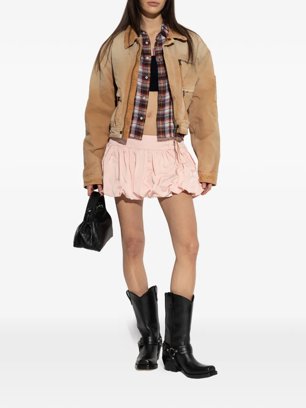 Розовый цвет, пузырчатый подол, скрытая застежка-молния сбоку