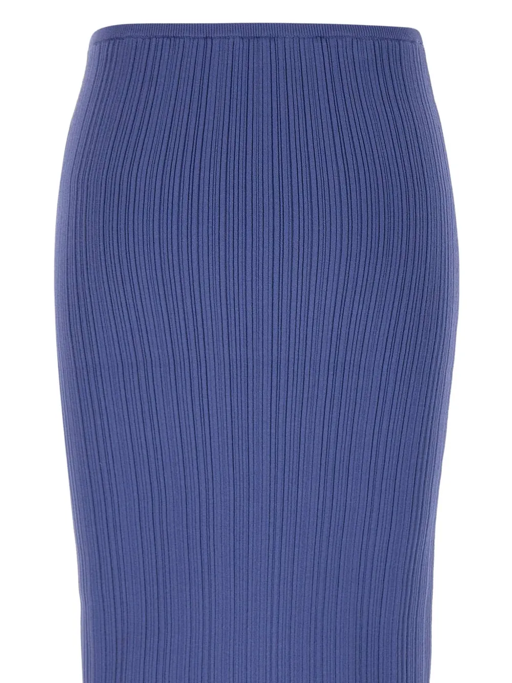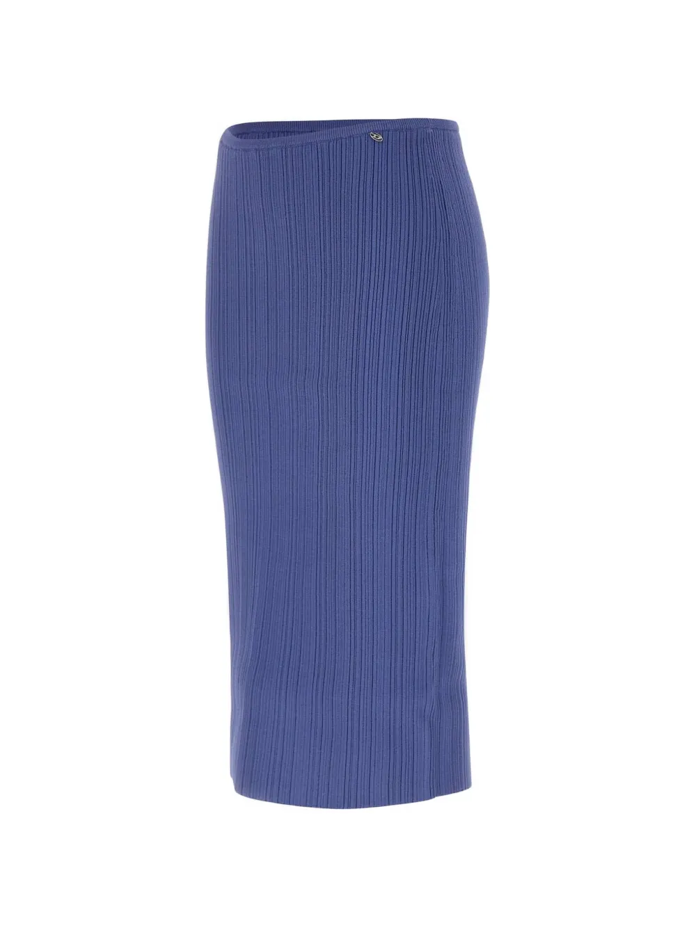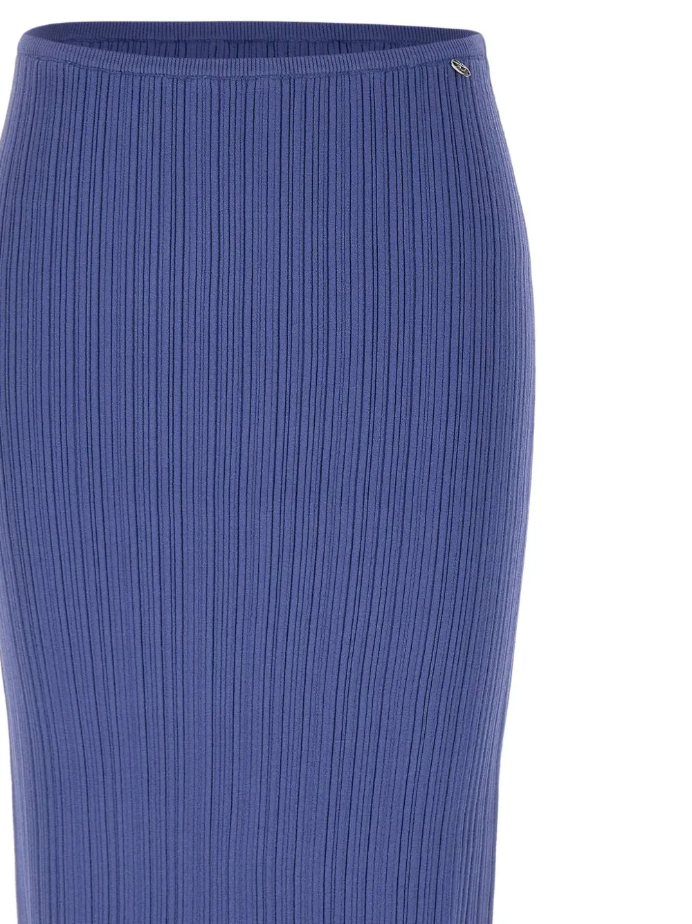 Синий вязаный в рубчик пояс с логотипом и подвеской