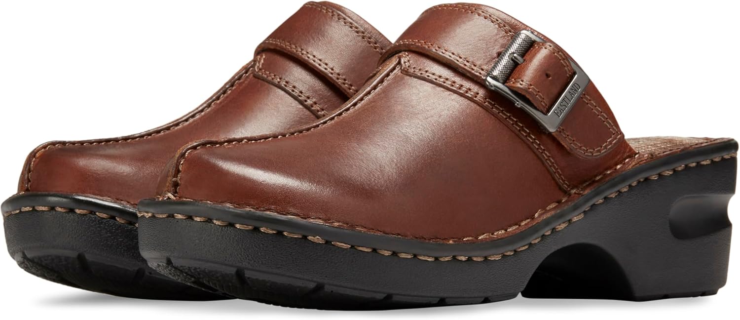 Наши сабо с ремешком и пряжкой отлично сочетаются с легкими юбками и любимыми джинсами. Верх из натуральной кожи с скрытой эластичной вставкой для индивидуальной посадки. Эксклюзивная стелька Eastland с активной памятью формы поддерживает и повторяет контуры вашей стопы. Ручная прошивка методом опанка к подошве обеспечивает гибкость с самого начала носки и долговечность. Амортизирующая полиуретановая подошва обеспечивает легкость, прочность и сцепление.