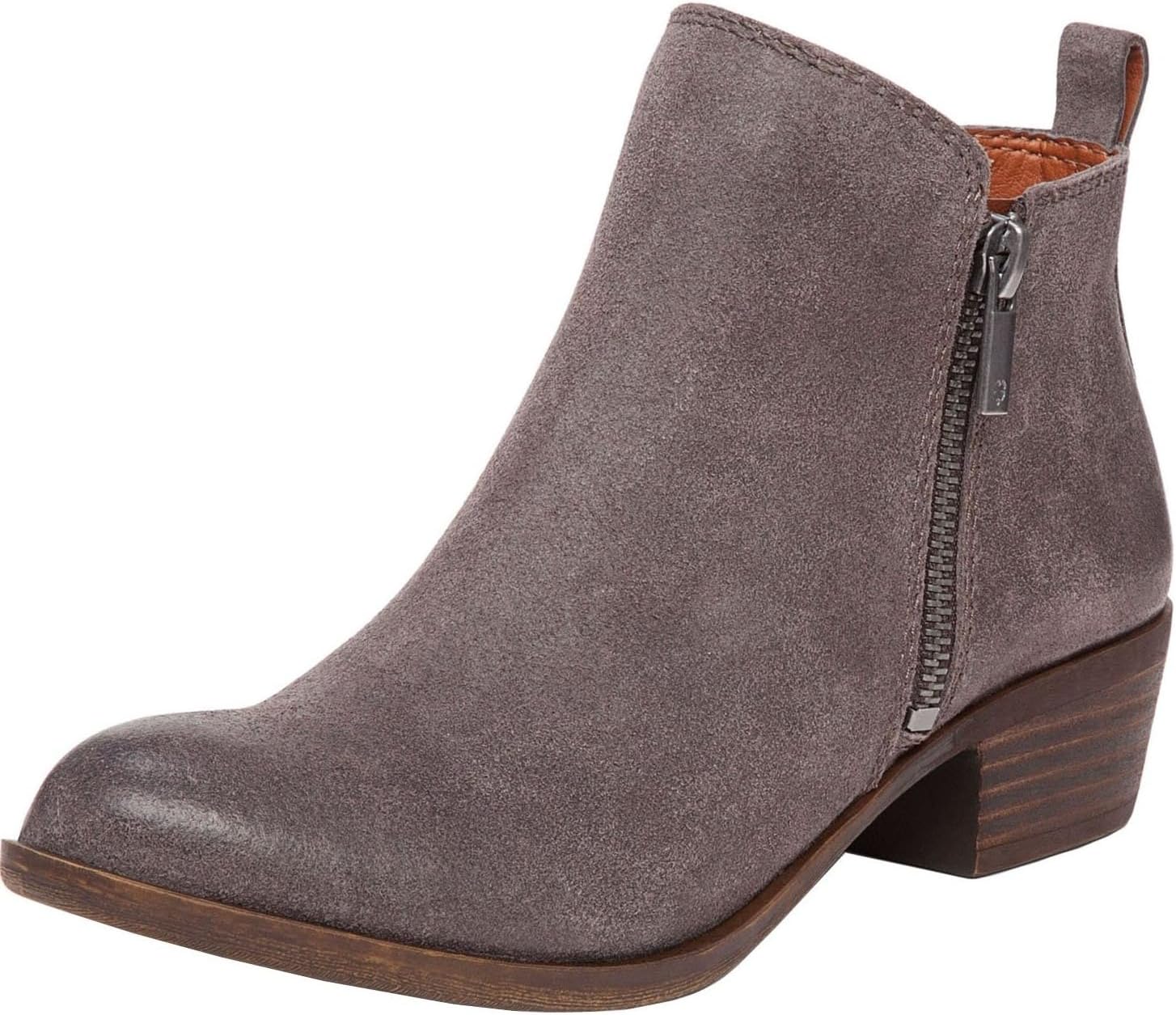 Классика в моде с фирменными ботильонами Basel от Lucky Brand Выполнены из кожи или замши Двойная боковая молния с круглым носком Легко амортизированная стелька для комфорта Подошва из синтетических материалов с устойчивым квадратным каблуком высотой 1,5"