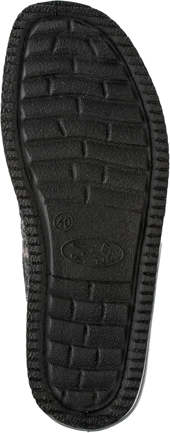 Модные мужские тапочки из прочного войлочно-ледена; благодаря легкой подошве из ПУ эта обувь очень удобна в носке в классическом стиле, после рабочей обуви и вечером после работы. Этот высококачественный материал обеспечивает приятный климат для стопы. Отличные домашние тапочки антрацитового цвета со средней шириной.