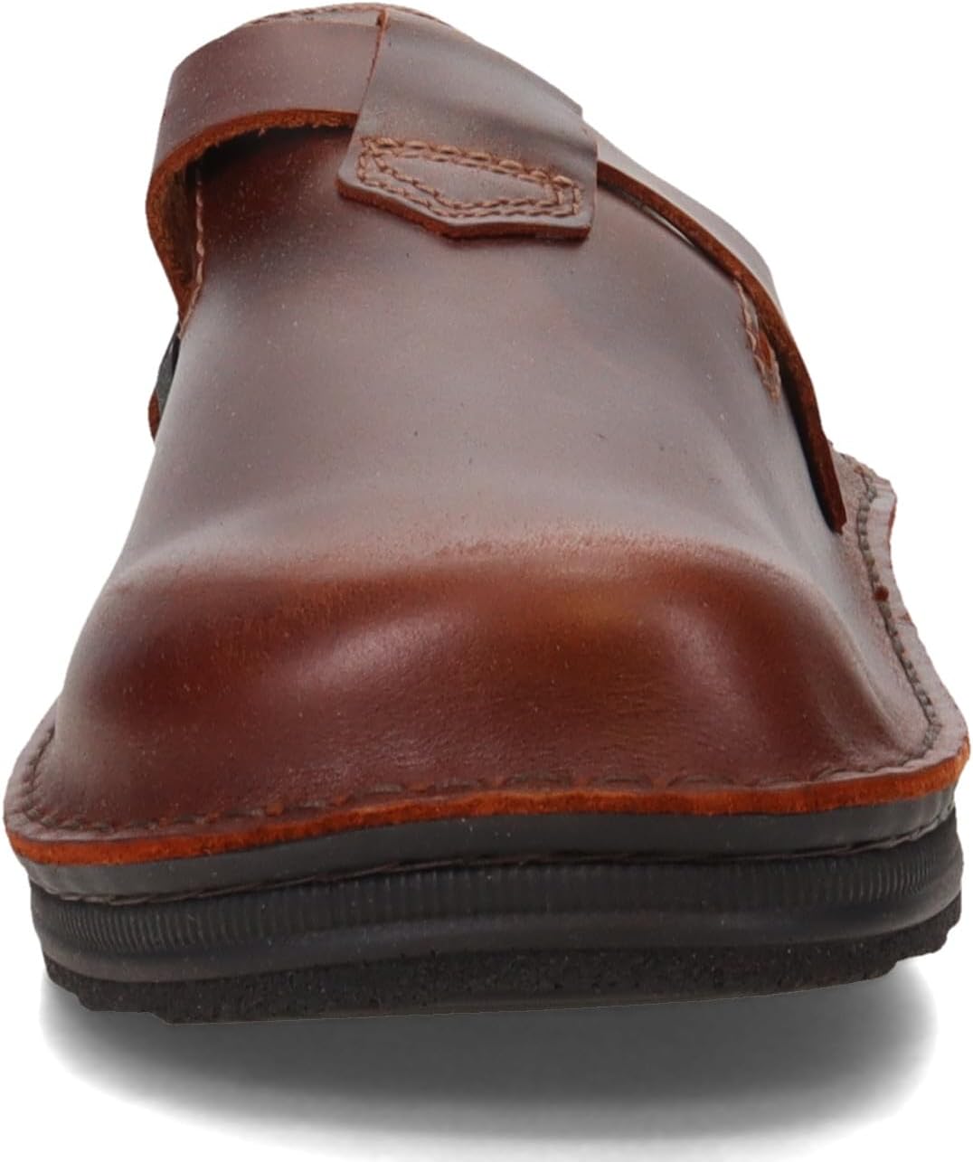 Фьорд Naot - это сабо с функциональной пряжкой на подъеме для регулировки. Съемная анатомическая стелька из пробки и латекса от Naot обернута в мягкую замшу и принимает форму стопы при носке. Мужская скандинавская коллекция включает в себя каблук высотой 1,5 дюйма.