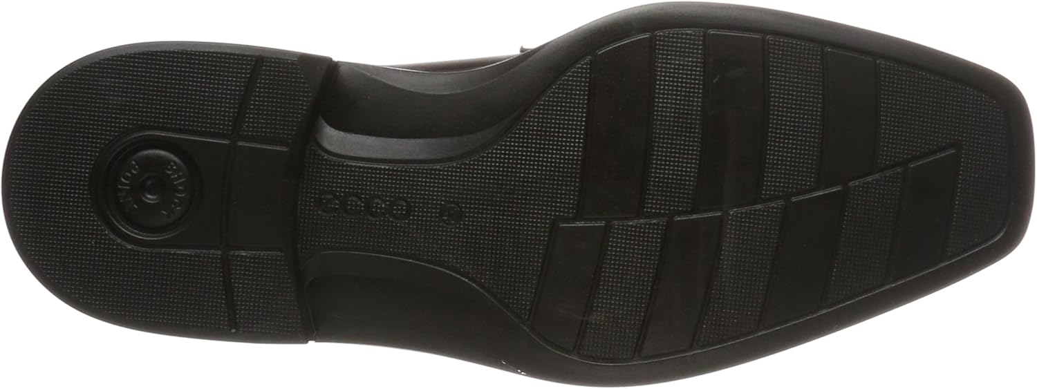 Обновленные аккуратной строчкой в виде трамвайной линии на их блестящих черных верха из кожи полного зерна, мужские классические туфли ECCO Minneapolis Tram надежно фиксируются шнурками на удлиненных квадратных носках, а технология FLUIDFORM и дополнительные съемные кожаные стельки толщиной 3 мм обеспечивают амортизацию снизу.