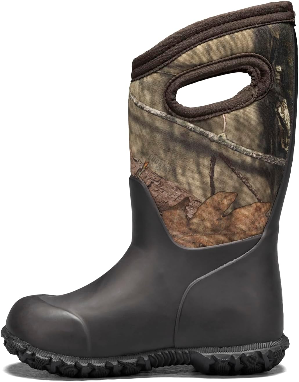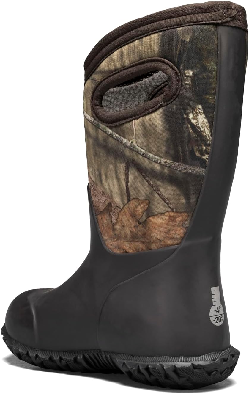 100% водонепроницаемые утепленные детские резиновые сапоги; Комфорт при температуре до -20°С/-4°F Изготовлены с 5 мм водонепроницаемой изоляцией Neo-Tech Технология Bogs Max-Wick испаряет пот, чтобы ноги оставались сухими Экологичная стелька Bloom на основе водорослей, которая помогает очищать загрязненные водные среды Удобные ручки для надевания; Светоотражающая отметка температурного режима на пятке