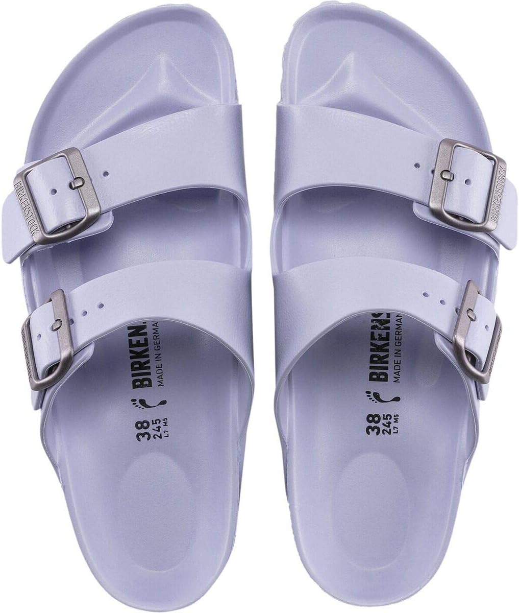 No fur The legendary two-strap design from BIRKENSTOCK - the Arizona. Modeled on the cork original, this sandal is made from ultra lightweight and highly flexible EVA. These sandals are shock absorbing, waterproof, and skin-friendly. Wear them at the beach, in the garden, or around the gym and after workouts. It's the perfect addition to your classic BIRKENSTOCK sandals. Anatomically shaped BIRKENSTOCK footbed made from EVA Upper/lining/sole: one piece molded EVA Details: two straps, each with an individually adjustable pin buckle; waterproof, washable, ultra lightweight