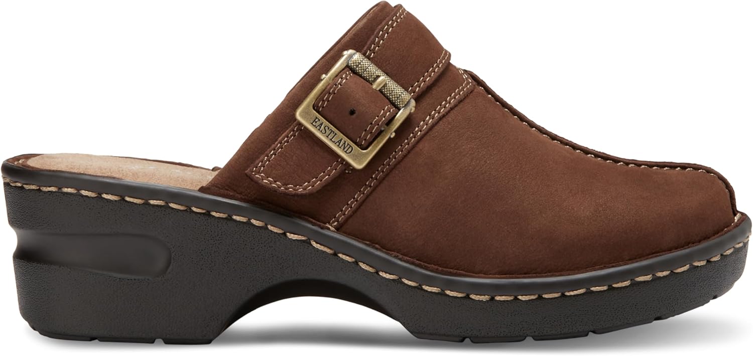 Наши сабо с ремешком и пряжкой отлично сочетаются с легкими юбками и любимыми джинсами. Верх из натуральной кожи с скрытой эластичной вставкой для индивидуальной посадки. Эксклюзивная стелька Eastland с активной памятью формы поддерживает и повторяет контуры вашей стопы. Ручная прошивка методом опанка к подошве обеспечивает гибкость с самого начала носки и долговечность. Амортизирующая полиуретановая подошва обеспечивает легкость, прочность и сцепление.