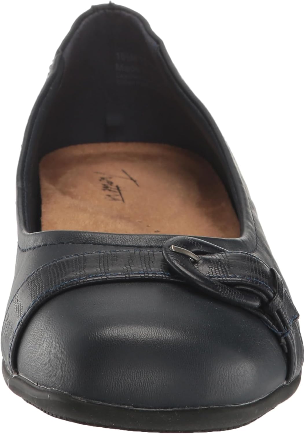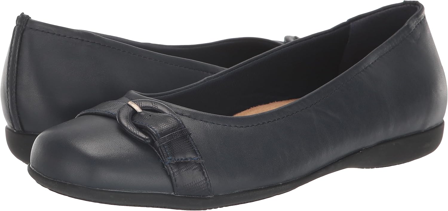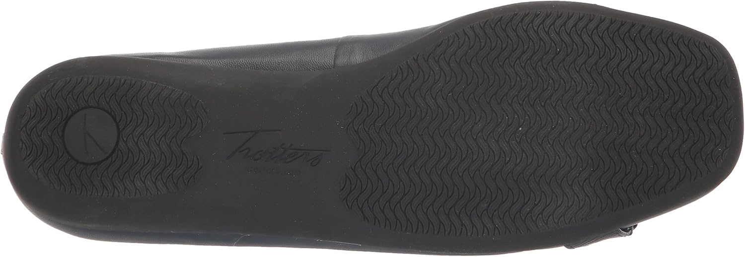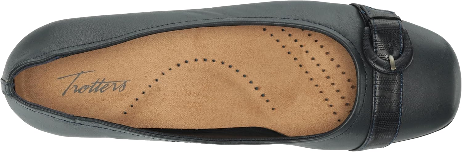 Add some effortless style to any look with the Trotters(r) Sylvia flat shoe. Slip on construction. Square toe silhouette with buckle detail across the toe. Smooth leather upper