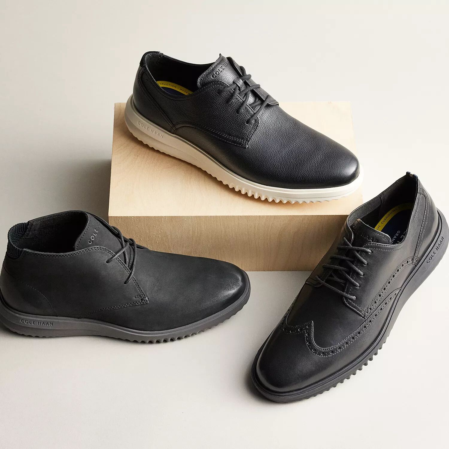 Дополните свой изысканный стиль мужскими кожаными оксфордами Cole Haan Grand+ Wingtip.