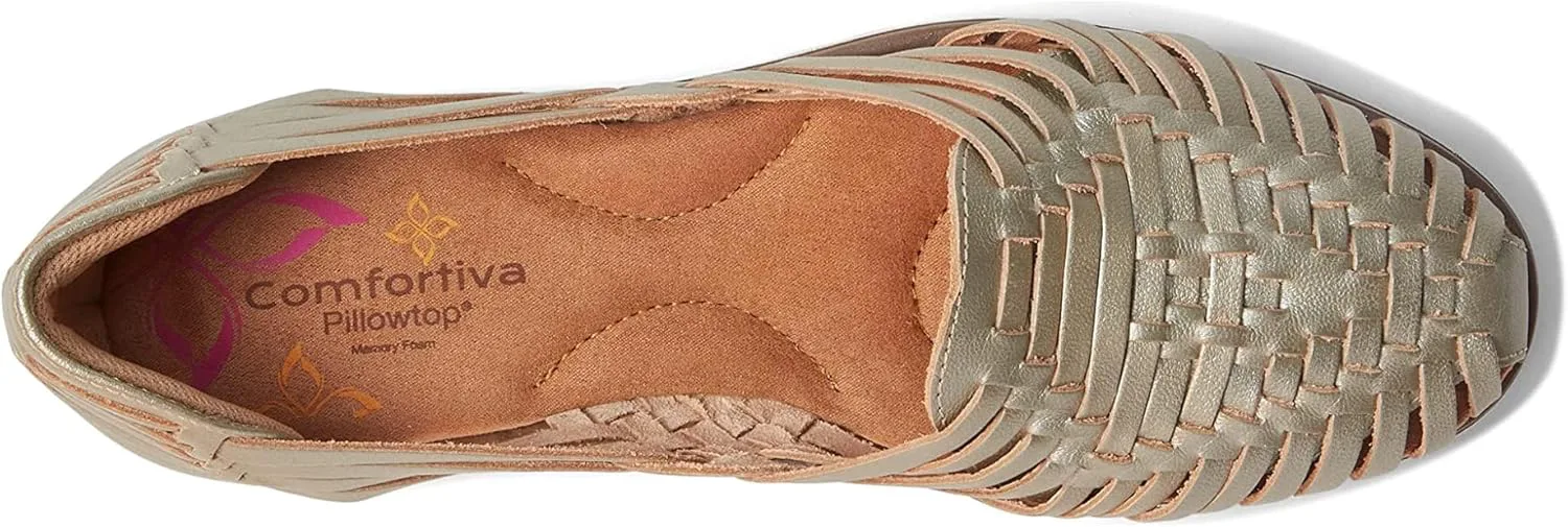 Погрузитесь в вечный стиль и комфорт с балетками Rainer от Comfortiva. Модель выполнена с плетеным дизайном huarache на верху из кожи полного слоя и с гладкой подошвой кроссовочного типа, обеспечивая гибкую посадку, идеальную для ношения в течение всего дня, что делает их отличным спутником в путешествиях. Верх из кожи с плетеными ремешками для дополнительной привлекательности Легко надевать благодаря удобному дизайну без застежек Подкладка из микрофибры Стелька Pillowtop с покрытием из микрофибры - наша эксклюзивная запатентованная стелька из пены с эффектом памяти обеспечивает долгосрочную амортизацию, подстраиваясь под каждый ваш шаг, поглощая удары, снижая нагрузку и поддерживая правильную опору стопы Каблук 1/2 дюйма Гибкая противоскользящая подошва из TPR