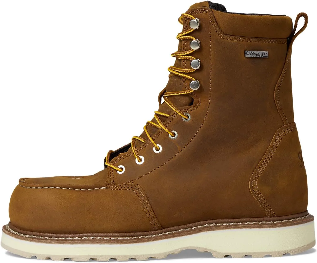 ПРОЧНЫЕ премиальные кожаные ботинки с мок-носком для мужчин с мягким воротником для комфорта во время передвижения. Алюминиевые ботинки с маркировкой ASTM F2413-18 I/75 C/75 EH сертифицированы по защите от ударов и сжатия ВОДОНЕПРОНИЦАЕМЫЕ ботинки с дышащим барьером Danner Dry, который защищает от попадания воды, позволяя теплу и поту выходить из них КОМФОРТНЫЕ мужские рабочие ботинки с PU средней подошвой и открытой PU-стелькой для долговечной амортизации, амортизационная подошва и циркуляция воздуха под ногами СКОЛЬЗЯЩАЯ УСТОЙЧИВОСТЬ и резиновая подошва, устойчивая к маслу, для уверенного сцепления и комфорта на твердых поверхностях весь день