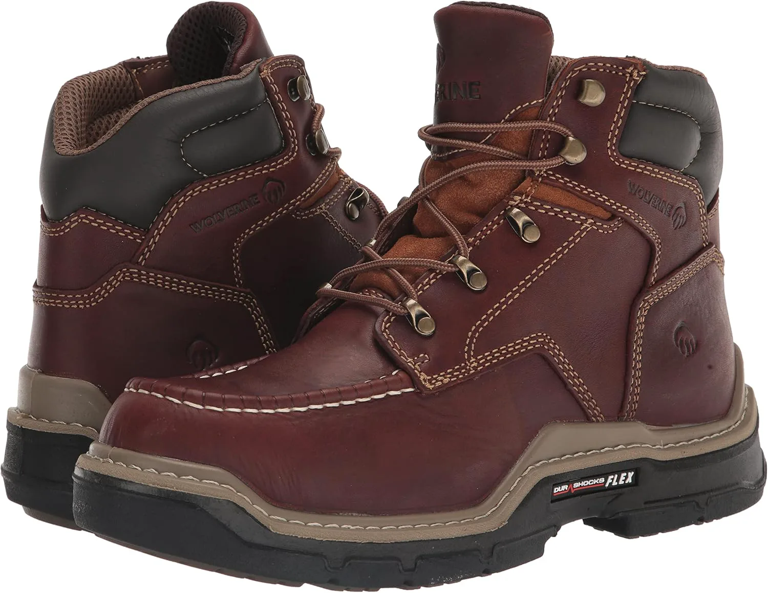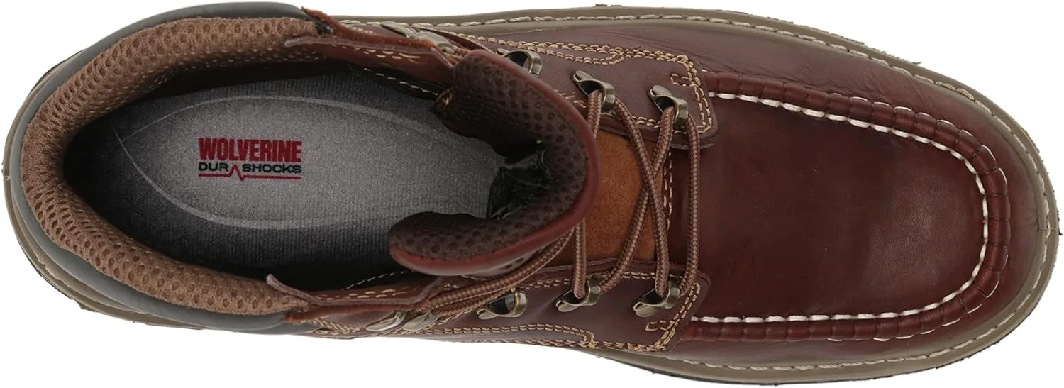 Верх из водонепроницаемой кожи полного зерна премиум-класса Дышащая водонепроницаемая мембрана с подкладкой из сетки, отводящей влагу Съемная двухплотностная PU стелька обеспечивает поддержку на каждом шаге Подошва из резины с протектором и технологией Wolverine DuraShocks Flex Составной носок с рейтингом ASTM F2413-18 M I/75 C/75 EH