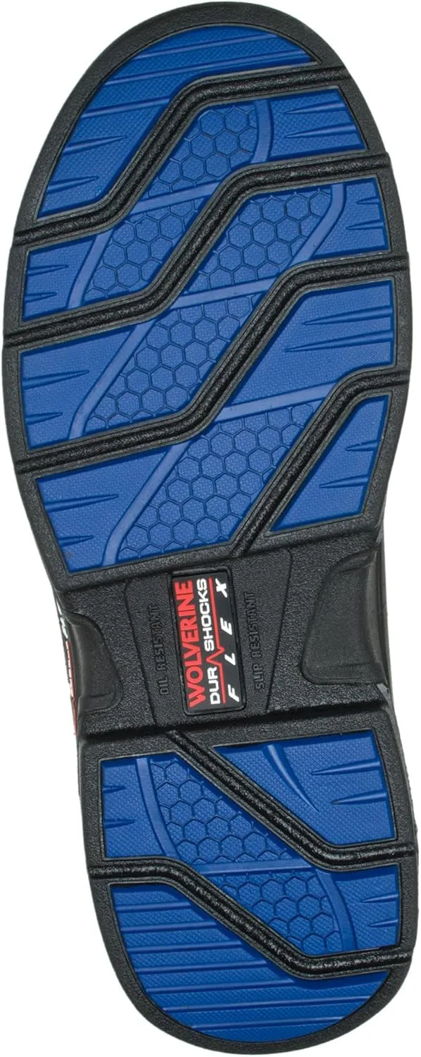 Верх из водонепроницаемой кожи полного зерна премиум-класса Дышащая водонепроницаемая мембрана с подкладкой из сетки, отводящей влагу Съемная двухплотностная PU стелька обеспечивает поддержку на каждом шаге Подошва из резины с протектором и технологией Wolverine DuraShocks Flex Составной носок с рейтингом ASTM F2413-18 M I/75 C/75 EH
