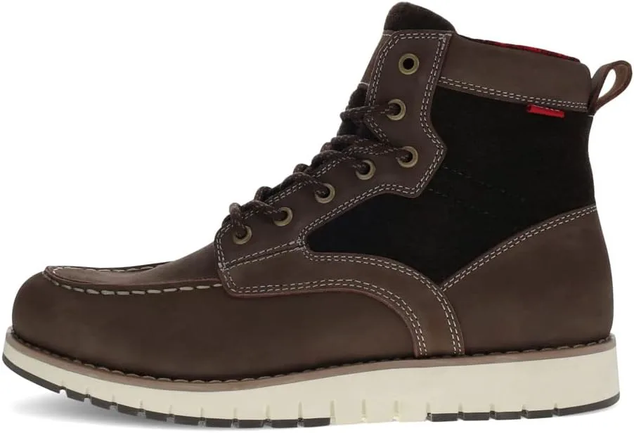 Откройте для себя приключения и подчеркните свой стиль с этими ботинками Levi’s. Верх из мягкой кожи и шерсти не только демонстрирует ваш непринужденный и стильный образ, но и обеспечивает вентиляцию и тепло, делая их идеальными для любой погоды и наряда. Кроме того, эти ботинки на шнуровке созданы для комфортной носки благодаря дополнительной подкладке в области голенища и язычка, а также прочной, амортизирующей подошве. Мужскую обувь легко надевать и снимать благодаря язычку на пятке, а стиль их легко сочетать с любым образом - от джинсов до хаки - благодаря контрастным материалам, детальной прострочке и сдержанному брендингу Levi’s.