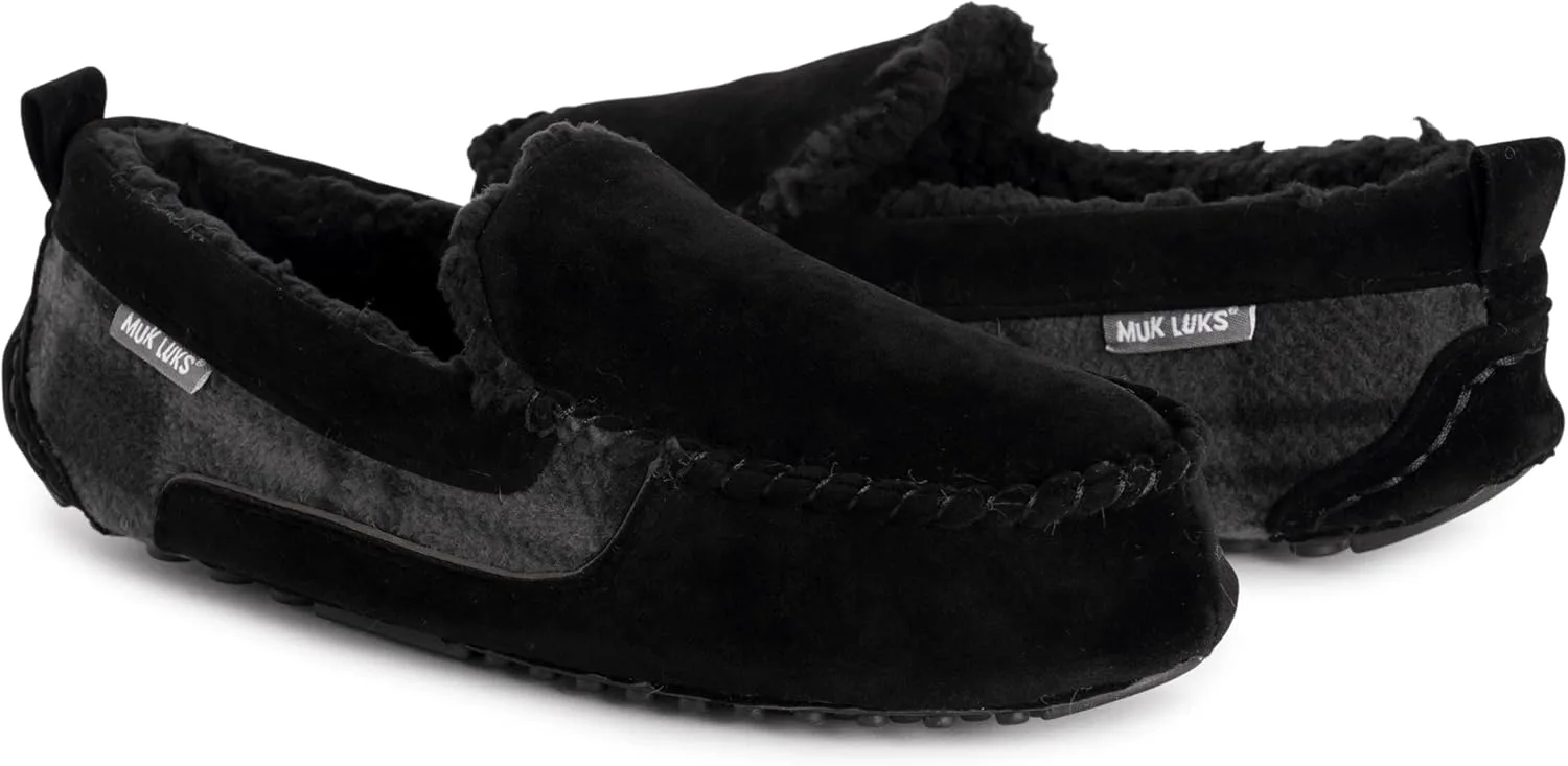 ПОДАРИТЕ НОГИ НОВОЙ ПАРЕ MUK LUKS: Наши мокасин-тапочки Emmett не заставляют вас хотеть покидать дом; Мягкие, прочные и простые в уходе, что делает их идеальным домашним тапочками! МЯГКИЕ, НО ПРОЧНЫЕ: Эти тапочки сделаны из 100% полиэстерных стельок и верха, подкладки из искусственного меха, пенопластовых стельок и подошвы TPR для внутренней и уличной среды; Это обеспечивает идеальное сочетание структуры и комфорта для ваших стоп в тапочках ОДИН ДЛЯ ВСЕХ: Наши тапочки Emmett Moccasin доступны в мужских целых размерах 9-13 УХОД И ЧИСТКА: Чтобы поддерживать обувь в отличном состоянии, протирайте влажной тряпкой; Не отбеливайте, а кладите сушиться ровно; Уборка упрощена! ИСТОРИЯ МУКА ЛУКА: Здесь, в Muk Luks, мы празднуем аутентичный стиль и инновационное творчество с 1972 года; Уютно устройтесь и выражайте себя по-Мук Луксу, с свободой смешивать и уверенностью показывать свою индивидуальность. Отдохните, расслабьтесь и наслаждайтесь своим счастьем!