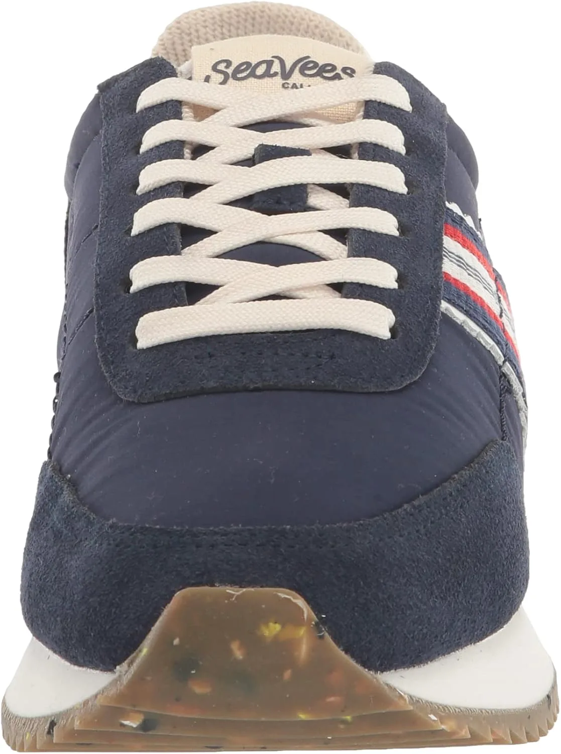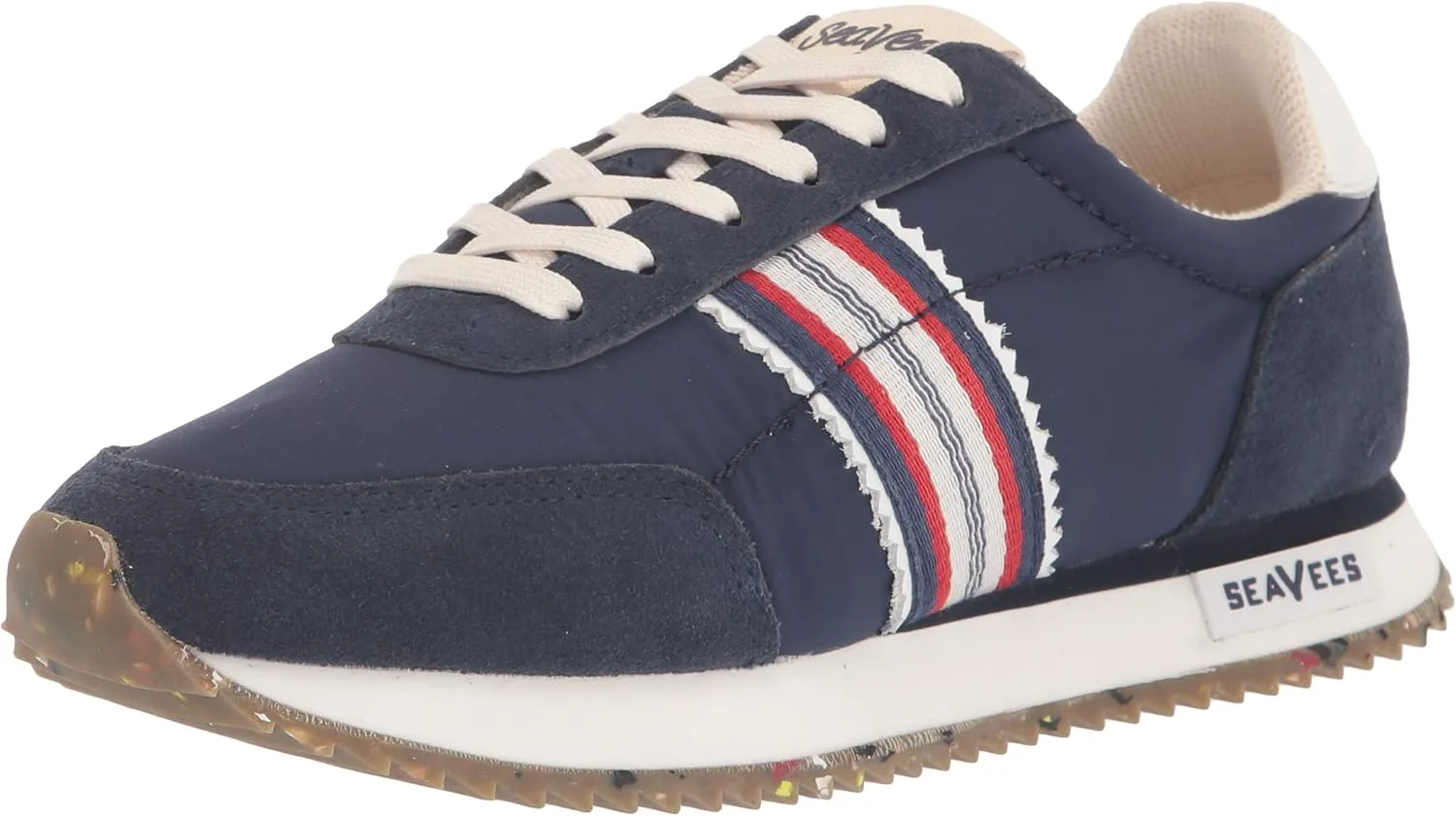 Продуманно изготовлены из качественных материалов: верх из органического хлопкового канваса, подкладка из хлопкового французского трикотажа, замшевые элементы, шнурки из переработанного полиэстера, подошва из натурального/переработанного каучука. Мужские ретро-кроссовки в стиле беговых моделей из органического хлопкового канваса и замши с мягкой подкладкой из французского трикотажа. Особенности: фирменная тесьма из оригинальных SeaVees 60-х и спортивная нашивка на языке. Удобная стелька с эффектом памяти и вентиляционными каналами для комфортного охлаждения. Подошва с протектором «зубчатая кромка» из натурального и переработанного каучука.