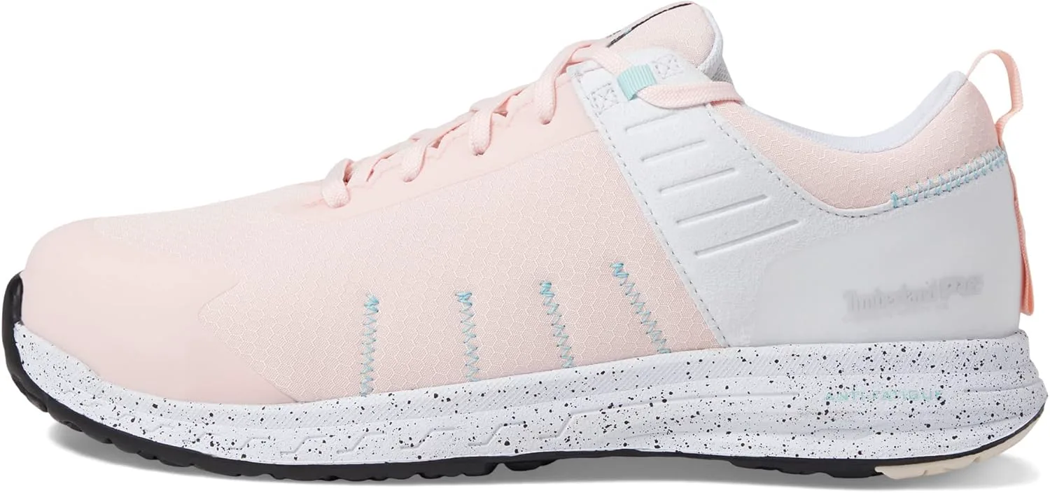 Легко справляйтесь с насыщенным рабочим днем в обуви Timberland PRO Overdrive Composite Safety Toe. Асимметричный композитный защитный носок, работающий на технологии углеродного щита, который соответствует или превосходит стандарты безопасности ASTM F2412-18a/ASTM F2413-18 I и C (ударные и сжатие), а также стандарты безопасности EH (электрическая опасность). Закрывка на шнуровке. Устойчивый к истиранию нейлон или сетчатый верх для легких и дышащих характеристик. Без металла и увечья. Стекловолоконная стойка для конструктивной поддержки. Мягкая полиуретановая съемная стелька с технологией Anti-Fatigue, оснащенная амортизирующей геометрической технологией, возвращающей энергию стопе для обеспечения поддержки и комфорта в течение всего дня. Наложение на носок TPU для повышения прочности и защиты. Цементная конструкция для гибкости. Стойкая от скольжения, без маркировки всепогодная TPU-подошва соответствует или превосходит стандарт ASTM F3445-21. Номера стиля: TB0A5UD7661 (румяна/белый/аква) TB0A5UAQ100 (белый/лавандовый/зеленый) TB0A5UGB001 (черный/медный/белый) TB0A5UBY357 (бирюз/черный/розовый) TB0A5UDU661 (Розовый/Белый/Желтый) TB0A5UBB524 (Фиолетовый/Коралловый/Белый) TB0A5UEF484 (Бирюзовый/Шалфей/Фиолетовый) TB0A5UCK001 (Черный) TB0A5UFQ001 (Черный/Голубой/Маджента) TB0A5UF3100 (Белый/Черный)