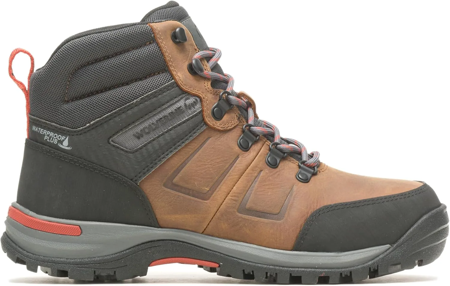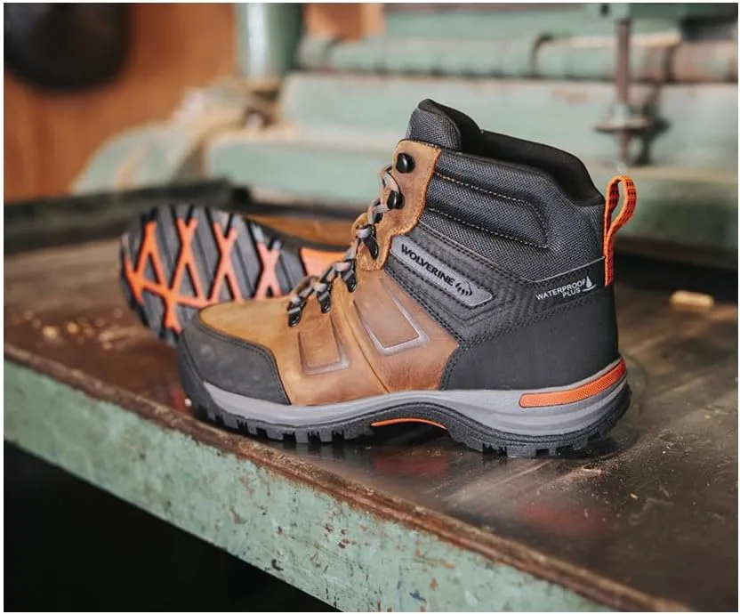 Премиальный водонепроницаемый верх из полной кожи Воздухопроницаемая водонепроницаемая мембрана с внутренней подкладкой из влагоотводящей сетки Подошва из резины с протектором обеспечивает сцепление с поверхностью Формованная межподошва EVA обеспечивает стабильность и амортизацию Стальная обувная носок соответствует стандарту ASTM F2413-18 M I/75 C/75 EH