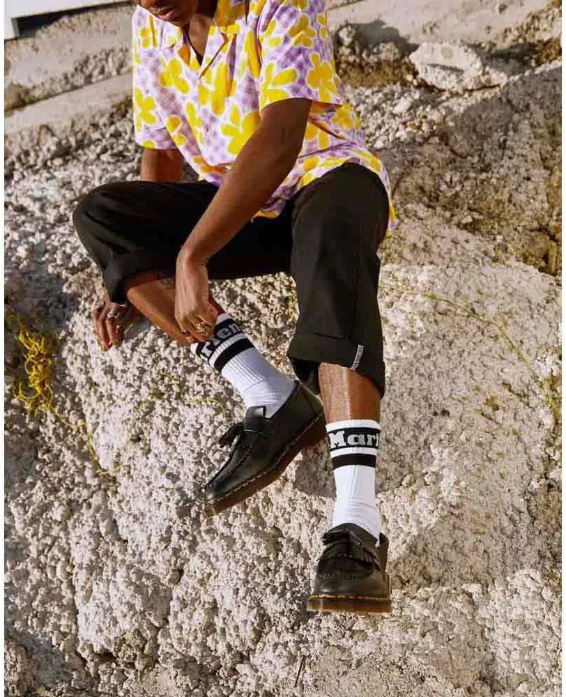 Новое издание классики субкультуры, подходящее для веганов. Лоферы Adrian уже более 40 лет являются выбором для удобной обуви для DM. Теперь они сделаны из Felix Rub Off, синтетической кожи, не содержащей животных продуктов. Имеют двойной кисточкой, бахрому kiltie и желтую строчку по кромке, что делает их мгновенно узнаваемыми как Dr. Martens.
