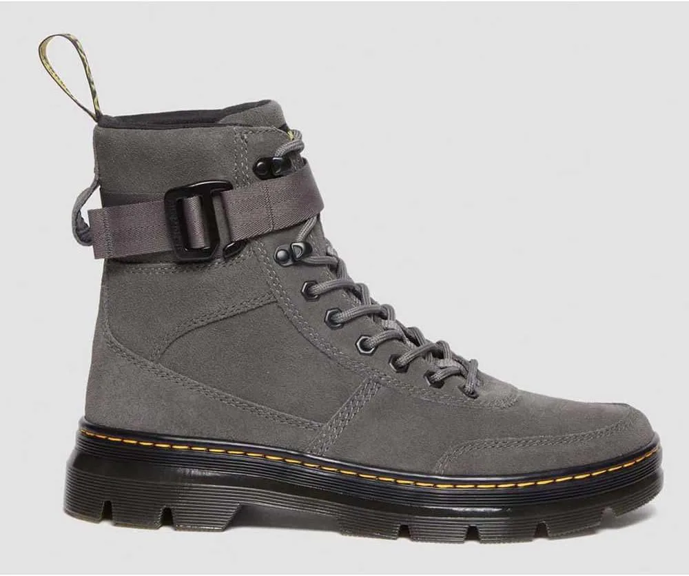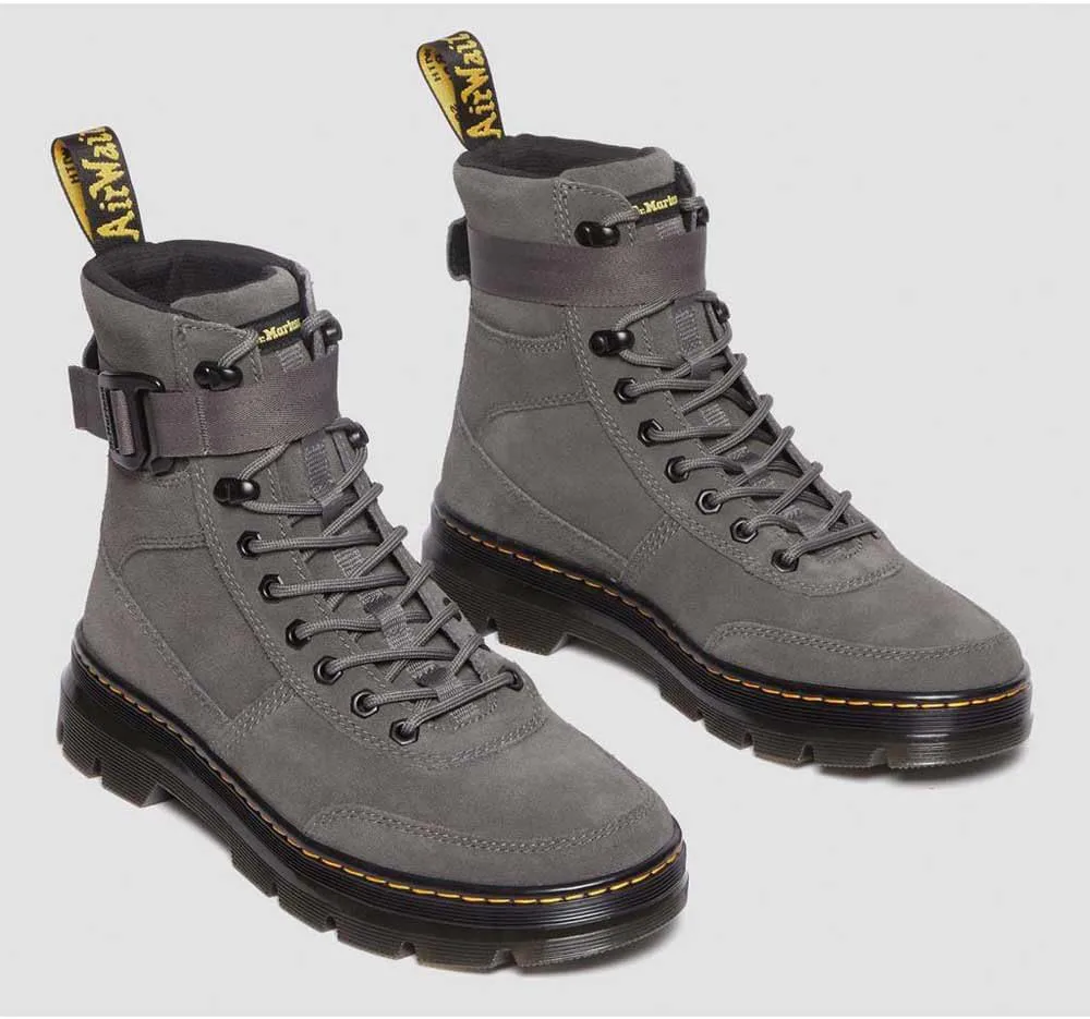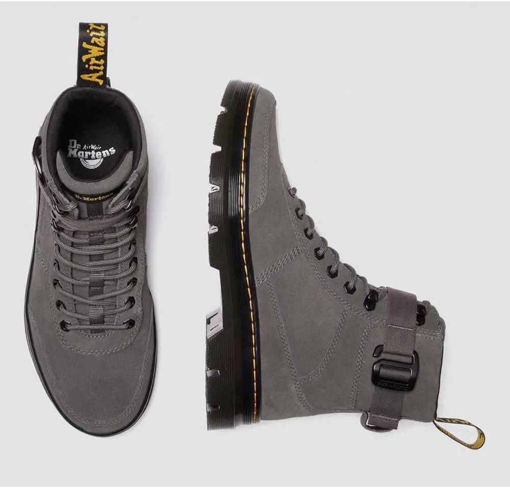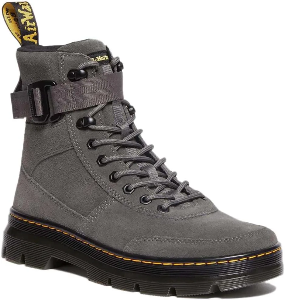 Эти ботинки сделаны из прочного, но легкого сочетания замши E.H. и высококачественного канваса, поэтому они удобны с первой же прогулки. Модель с 8 отверстиями Combs Tech вдохновлена оригинальными шнурованными ботинками DM 1460 и оснащена тональными шестигранными люверсами, петлей на пятке AirWair, а также регулируемым и съемным ремешком.