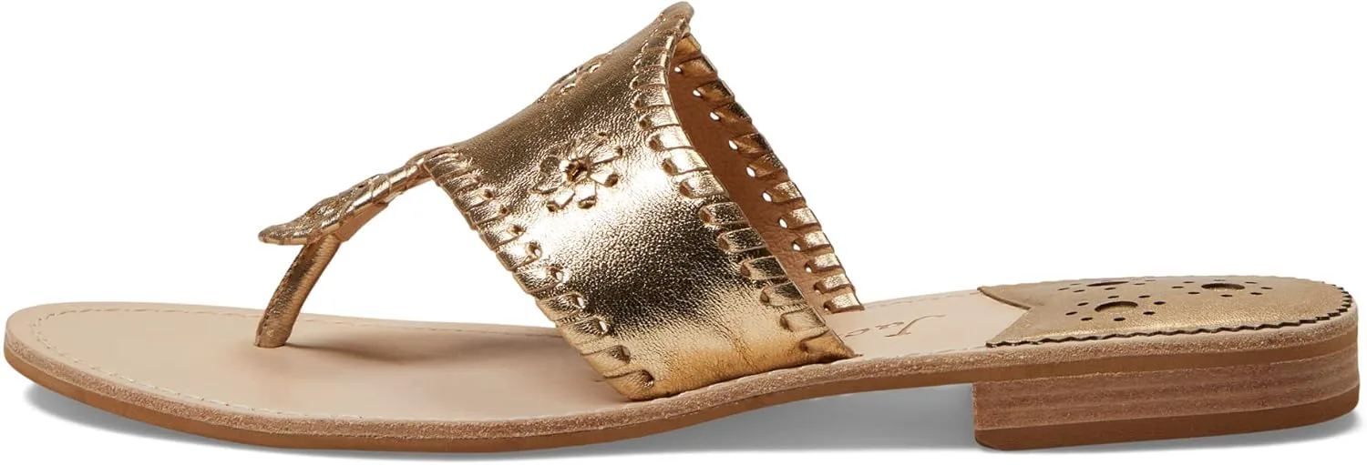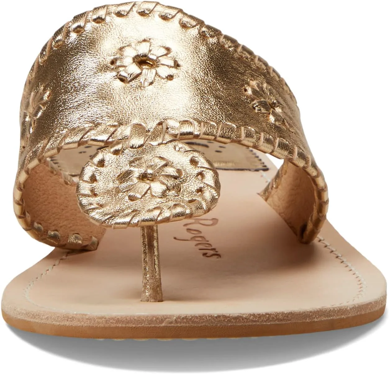 Получите сандали Jack Rogers Jacks Flat Sandal Wide с минималистичным дизайном и оставайтесь в комфорте весь день. Верх и стелька из кожи. Подкладка из кожи свиной кожи. Вьетнамский стиль. Фирменные детали бренда: плетеная шнуровка и рондель на ремешках.