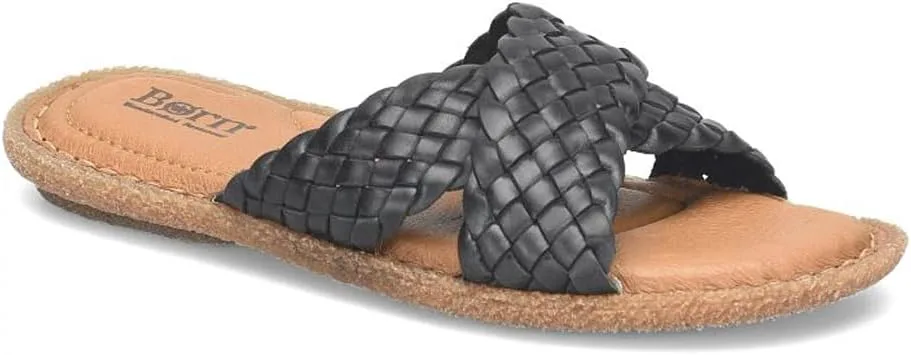 Наслаждайтесь прогулками в легких и воздушных сандалиях Born Rue flat, обеспечивающих комфорт и повышенную вентиляцию в течение всего дня. Верх и подкладка из кожи. Стелька из искусственного материала. Ручная прошивка Opanka создает прочное и гибкое соединение. Модель без застежек. Верхние ремешки перекрестного плетения. Силуэт с круглым носком. Подошва из легкого искусственного материала, обеспечивающая высокое сцепление и гибкость.